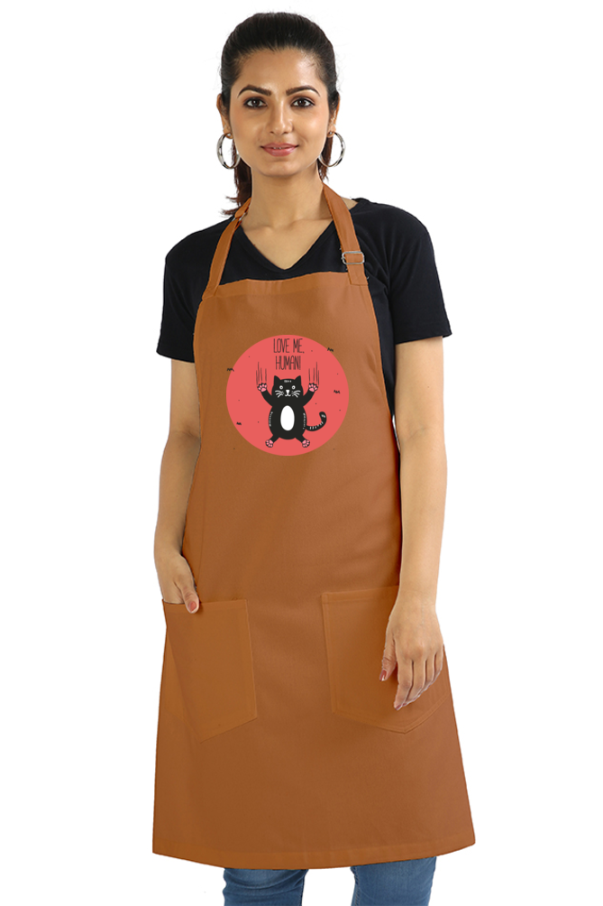 Who says cats aren't affectionate? If your cat is always in need of tender loving care, get 'Love Me, Human' apron and give them lots of attention!