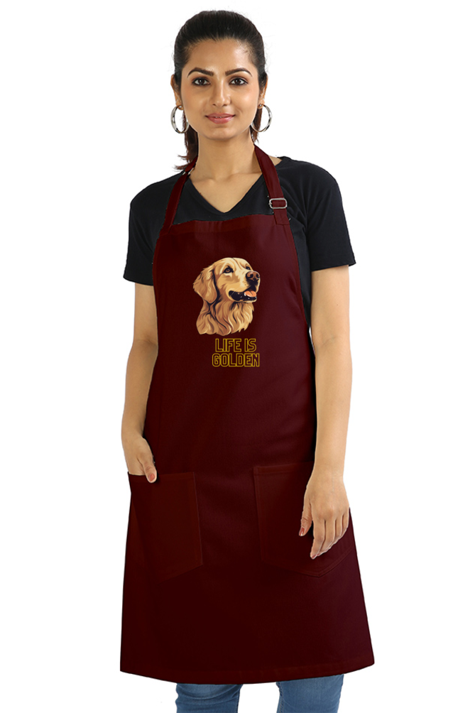 A 'Retriever Royale' apron that evokes the warmth and nostalgia of childhood, with the adorable golden retriever bringing memories of playtime, comfort, and joy.