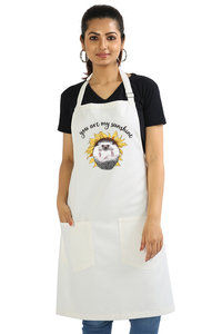 Who doesn't love the whimsical and carefree nature of sunny days? This cute hedgehog lounging in a sunflower 'Sunny Side Up' apron reminds you to keep that smile on your face.