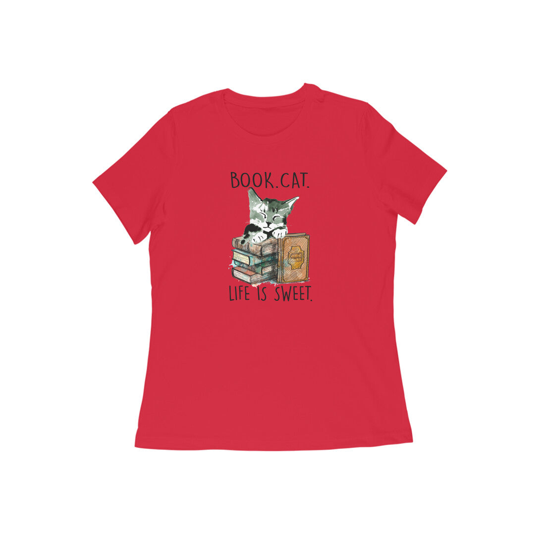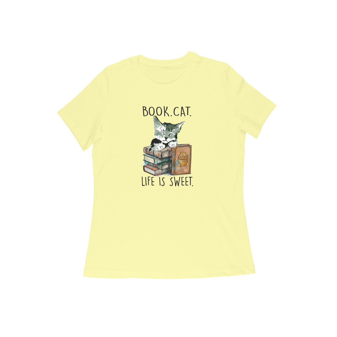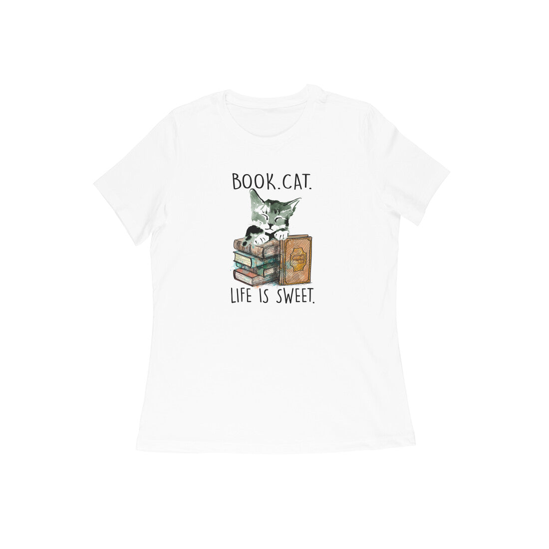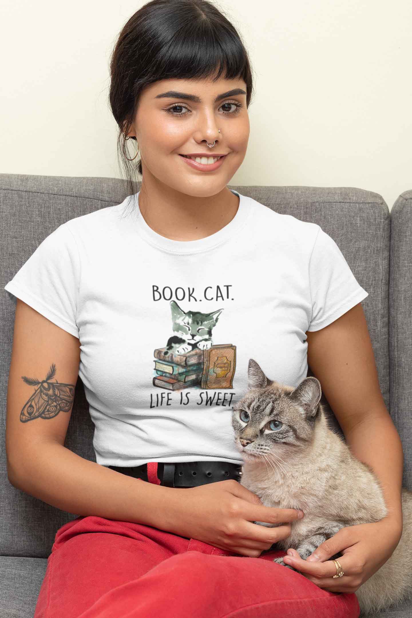 Is this cat sleeping or reading? We aren't really sure, but she looks adorable, no matter what. This 'Nerdy Kitty' women's round neck t-shirt is for all the book lovers out there who eat, sleep, breathe their favourite author.