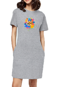 If you're feline happy and you know it, and you really want to show it, then 'Splishy Splashy Cat' t-shirt dress with pockets brings a pop of colour into any cat parent's life.