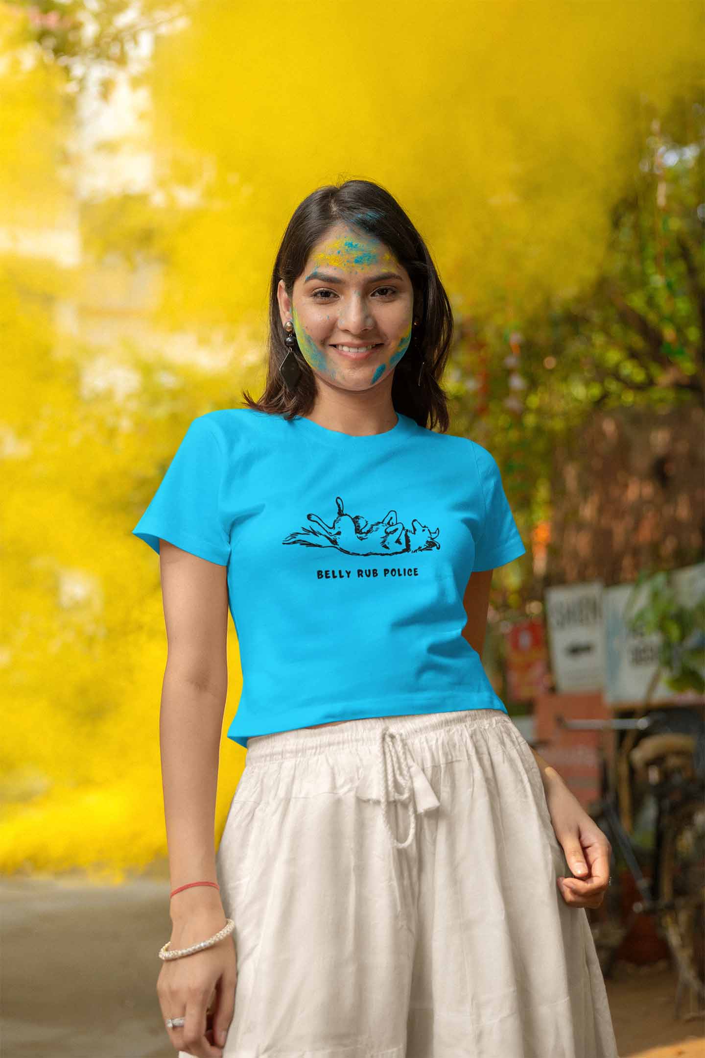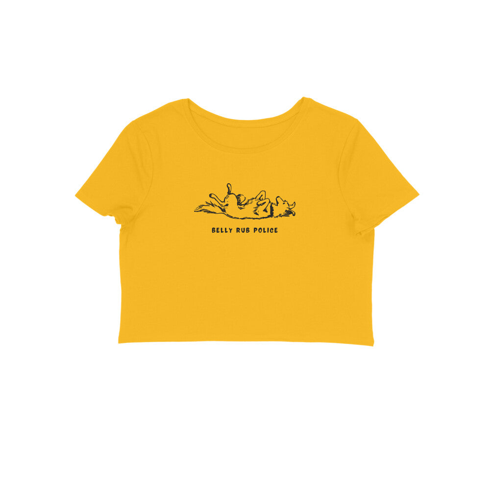 Attention, human! The Belly Rub Police are on patrol! This 'Belly Rub A Dub' crop top enforces one rule—belly rubs are mandatory, and resistance is futile.