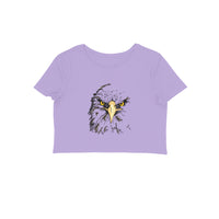 This striking eagle 'Fearless Gaze' crop top captures the essence of fearless determination—golden eyes locked in focus, ready to soar high and conquer new horizons!