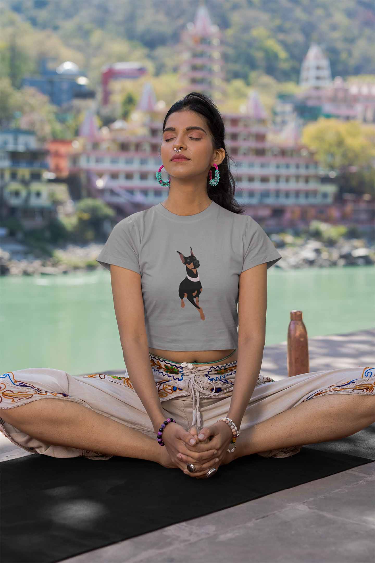 A 'Graceful Guard' crop top with an alert stance and poised elegance, this Doberman is always ready to stand by your side with unwavering devotion.