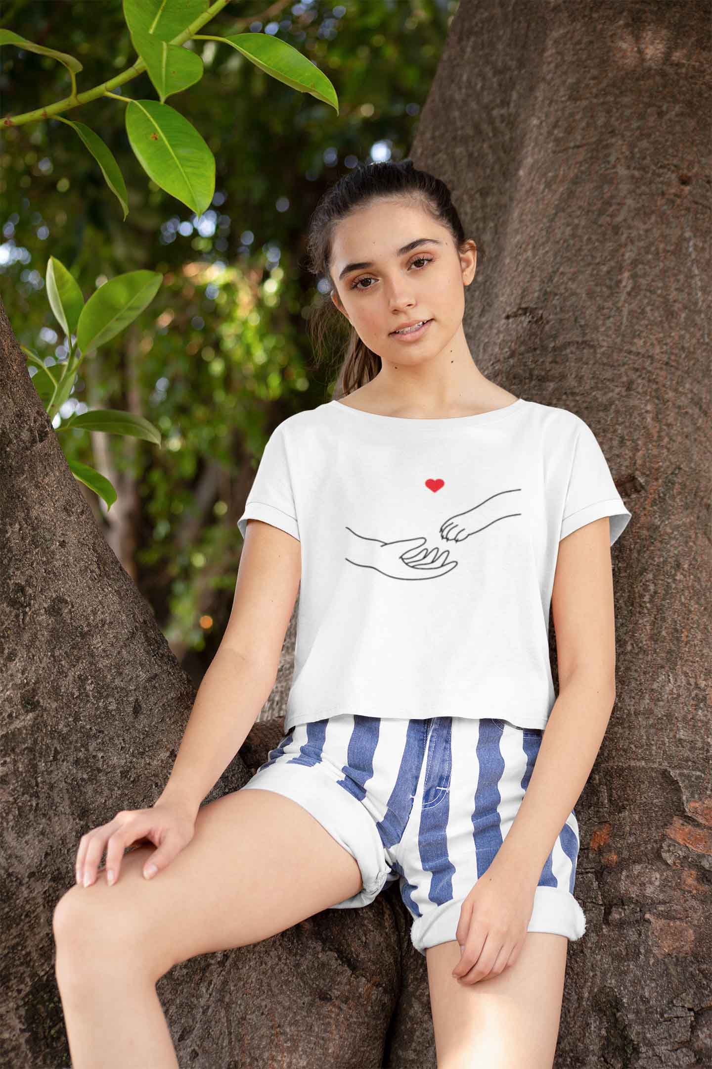 This minimalist 'Paw-fect Bond' crop top captures the unspoken promise between humans and their furry friends—a bond that lasts a lifetime.