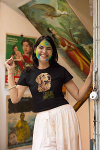 A 'Retriever Royale' crop top that evokes the warmth and nostalgia of childhood, with the adorable golden retriever bringing memories of playtime, comfort, and joy.