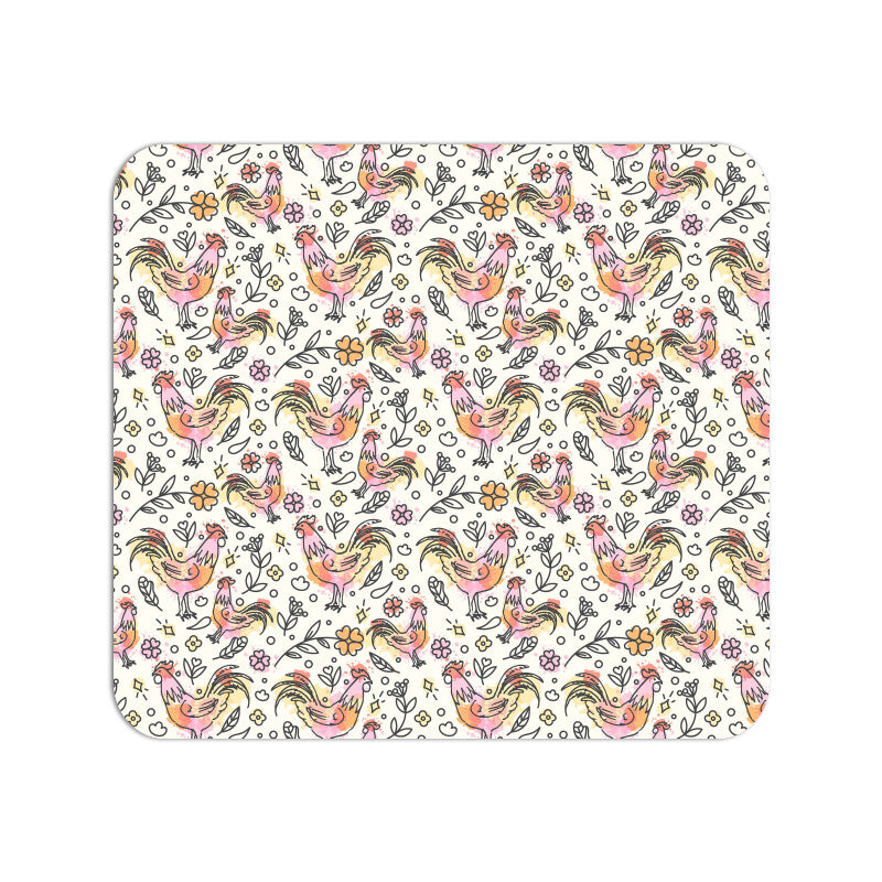 These watercoloor roosters, in a Mouse Pad surrounded by delicate florals and playful doodles, bring a fresh, farmhouse feel to every sunrise.