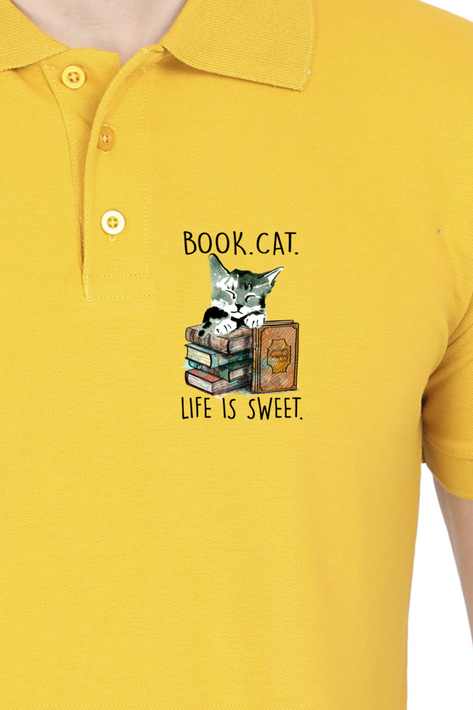 Polo Neck T-Shirt (Men) - Nerdy Kitty (3 Colours)