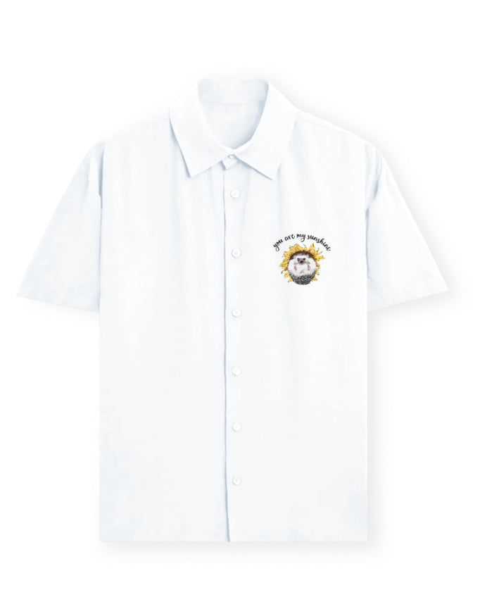 Who doesn't love the whimsical and carefree nature of sunny days? This cute hedgehog lounging in a sunflower 'Sunny Side Up' Relaxed Fit Half-Sleeves T-Shirt reminds you to keep that smile on your face.