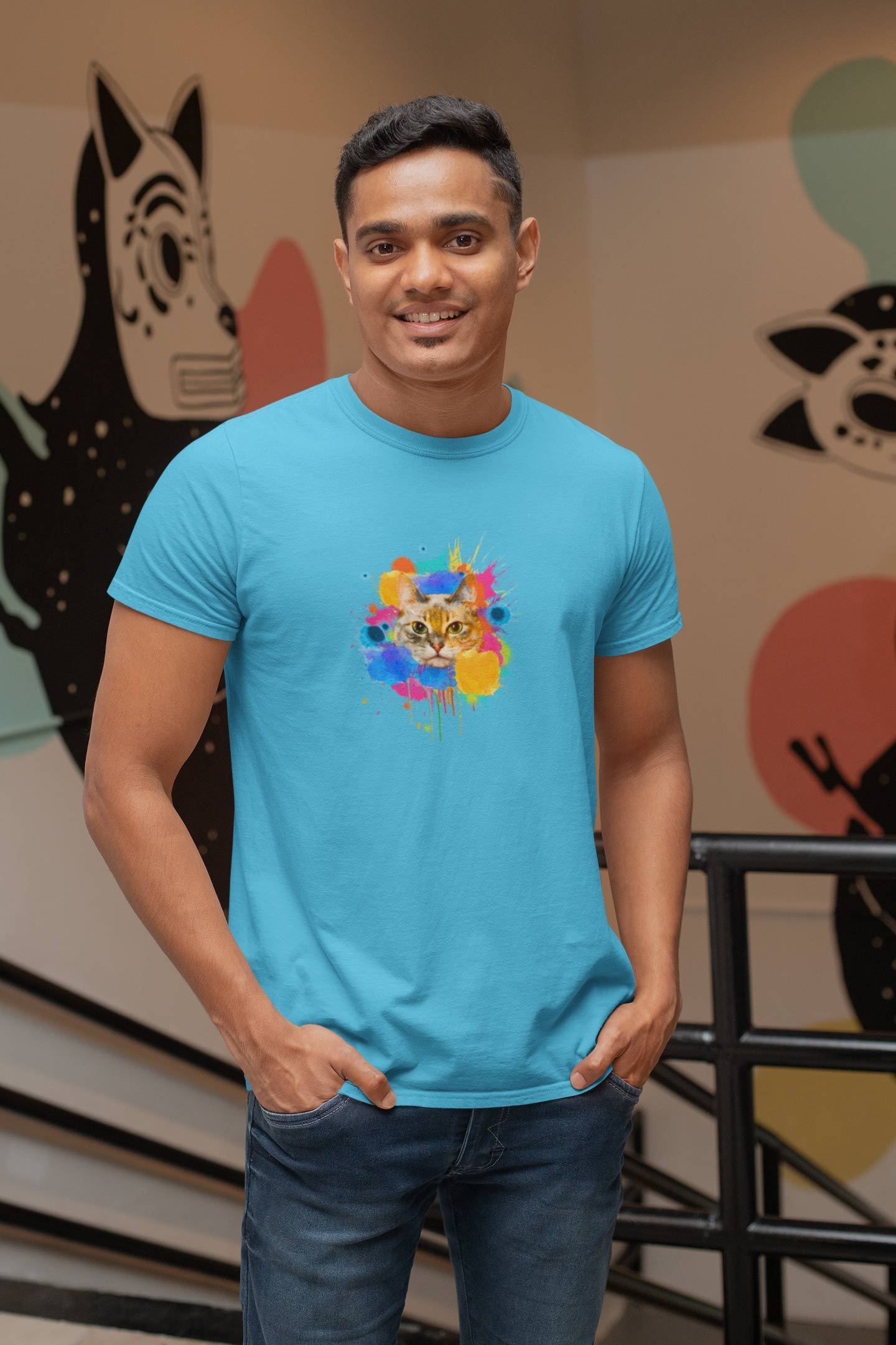 If you're feline happy and you know it, and you really want to show it, then 'Splishy Splashy Cat' men's t-shirt brings a pop of colour into any cat parent's life.