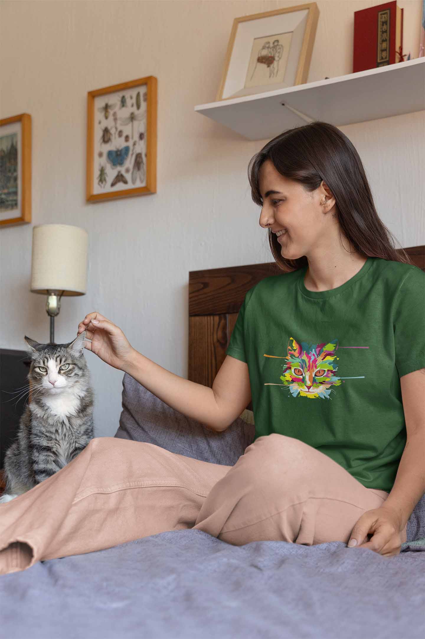 Round Neck T-Shirt (Women) - Laser Sharp Cat (8 colours)