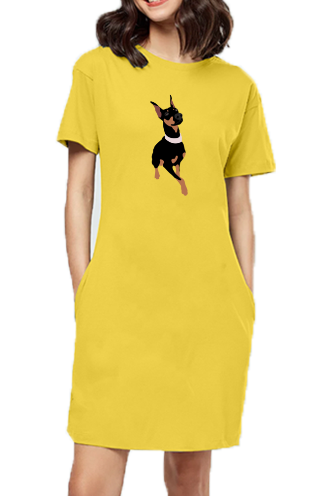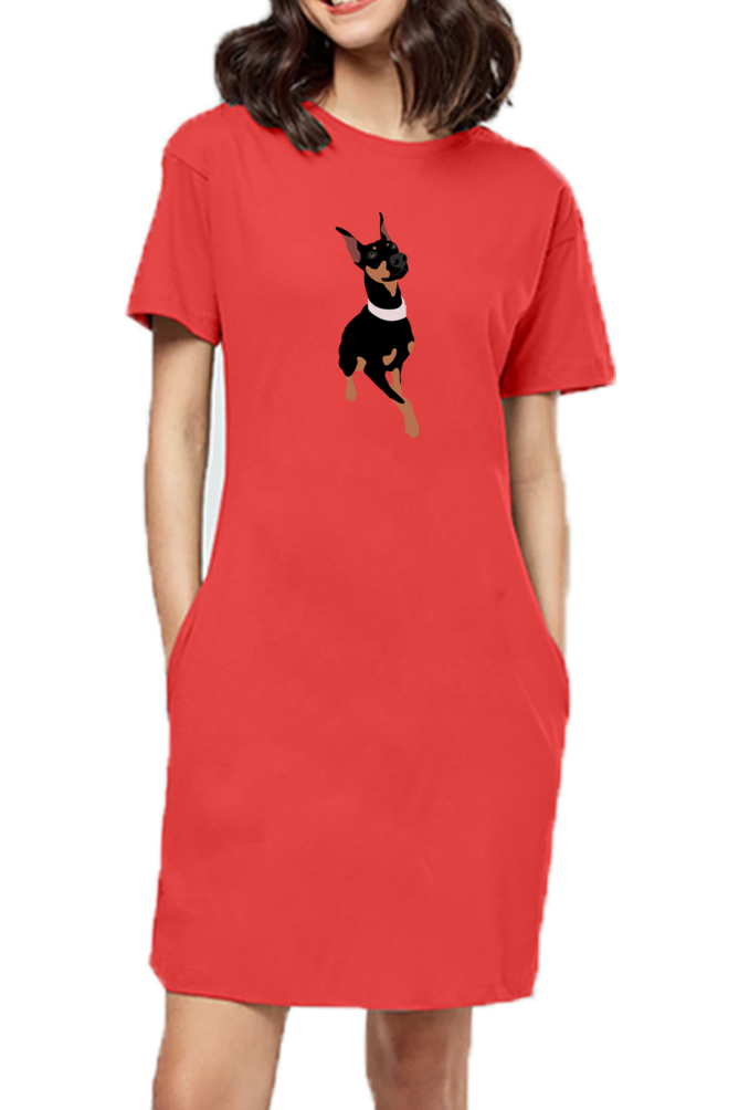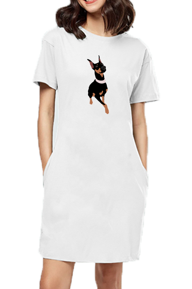 A 'Graceful Guard' t-shirt dress with pockets with an alert stance and poised elegance, this Doberman is always ready to stand by your side with unwavering devotion.