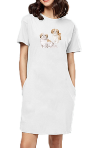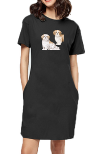 T-shirt Dress With Pockets - Shih Tzu Sweethearts (6 Colours) (Slim Fit)