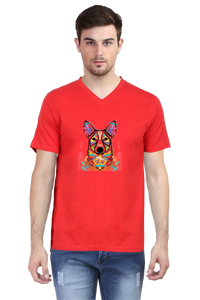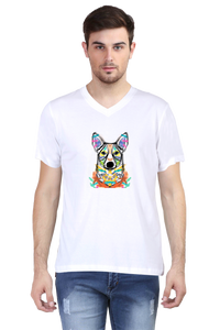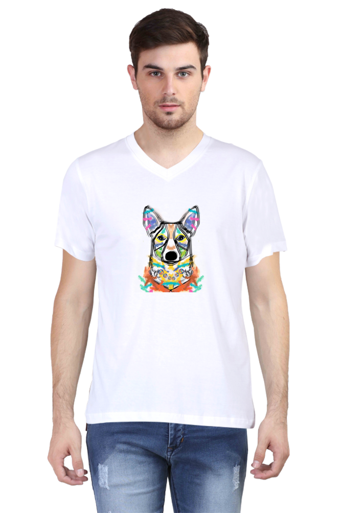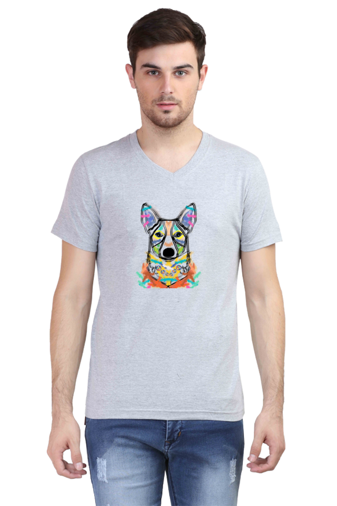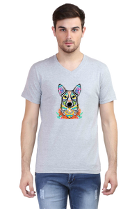 V Neck T-Shirt (Men) - Happy Corgi (3 Colours)