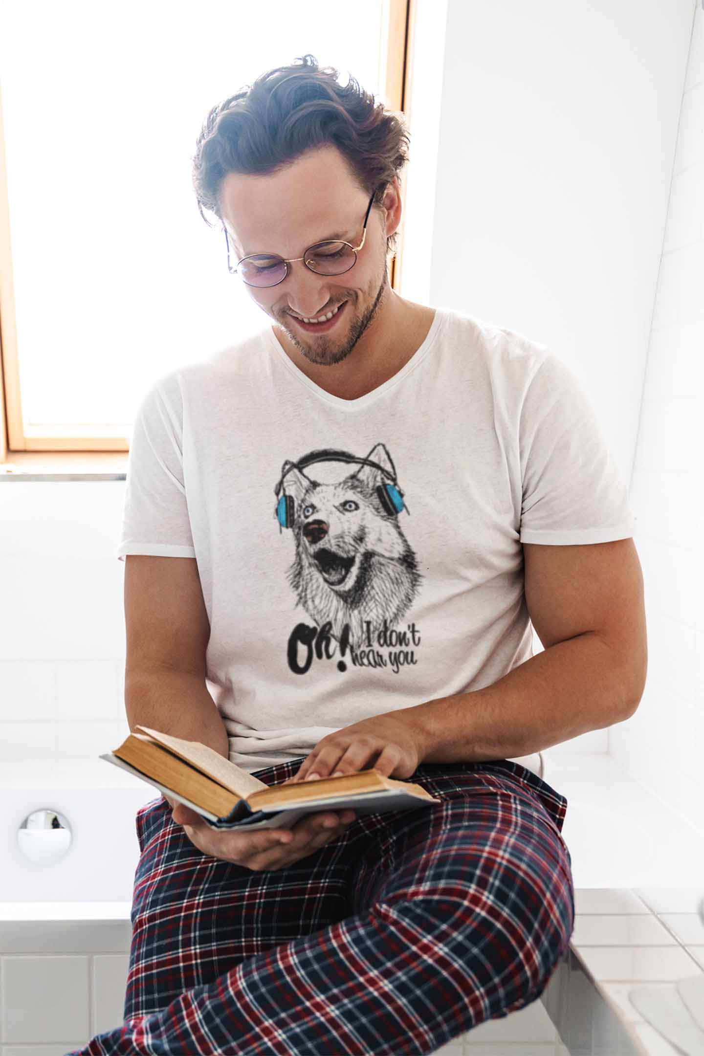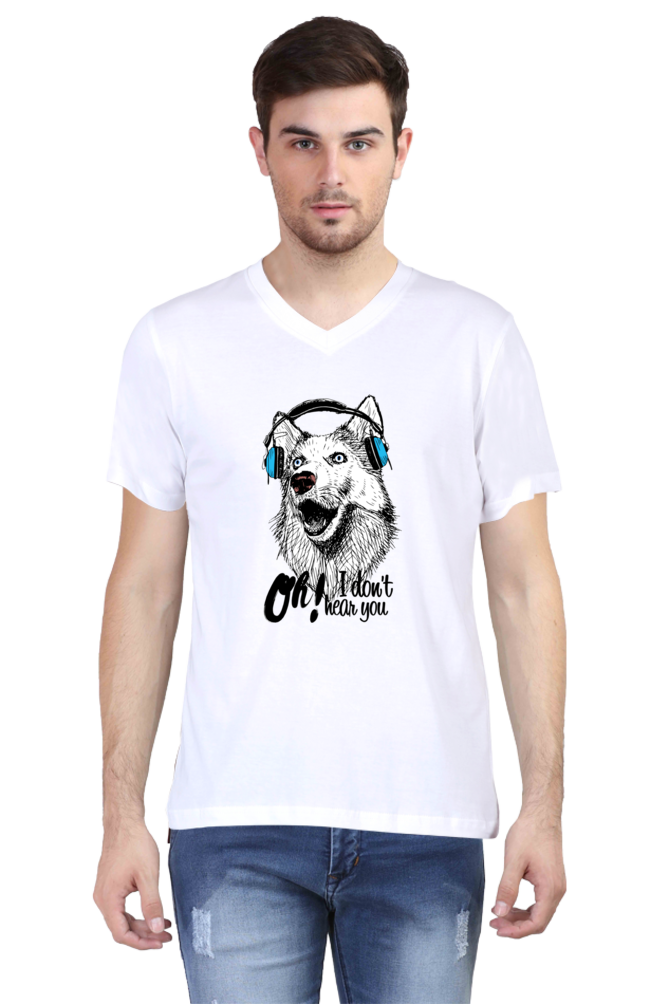 Plugged in to your electric music all day? So is this wolf! Grab this 'Howl You Doing?' men's v-neck t-shirt for your friend, the one whose name you have to call 5 times before they can finally hear you (you know who we're talking about!).