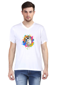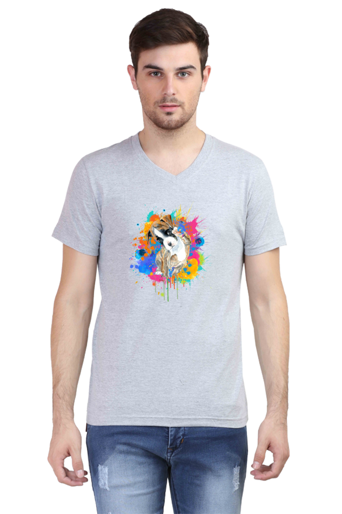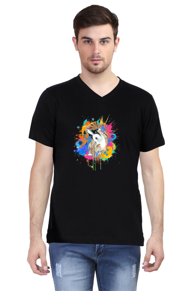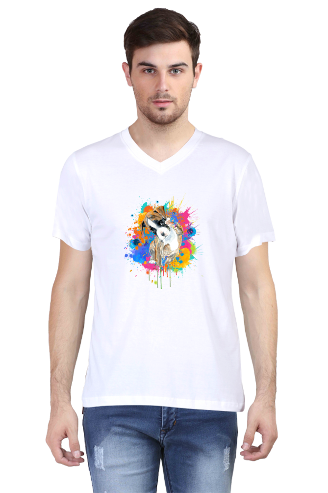 V Neck T-Shirt (Men) - Splashes Of Joy Puppy (5 Colours)