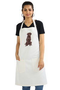 This chocolate Labrador 'Chocolate Charm' apron captures the playful joy of a pup eagerly waiting for a treat—paw up, eyes bright, and heart full of love, who can resist?