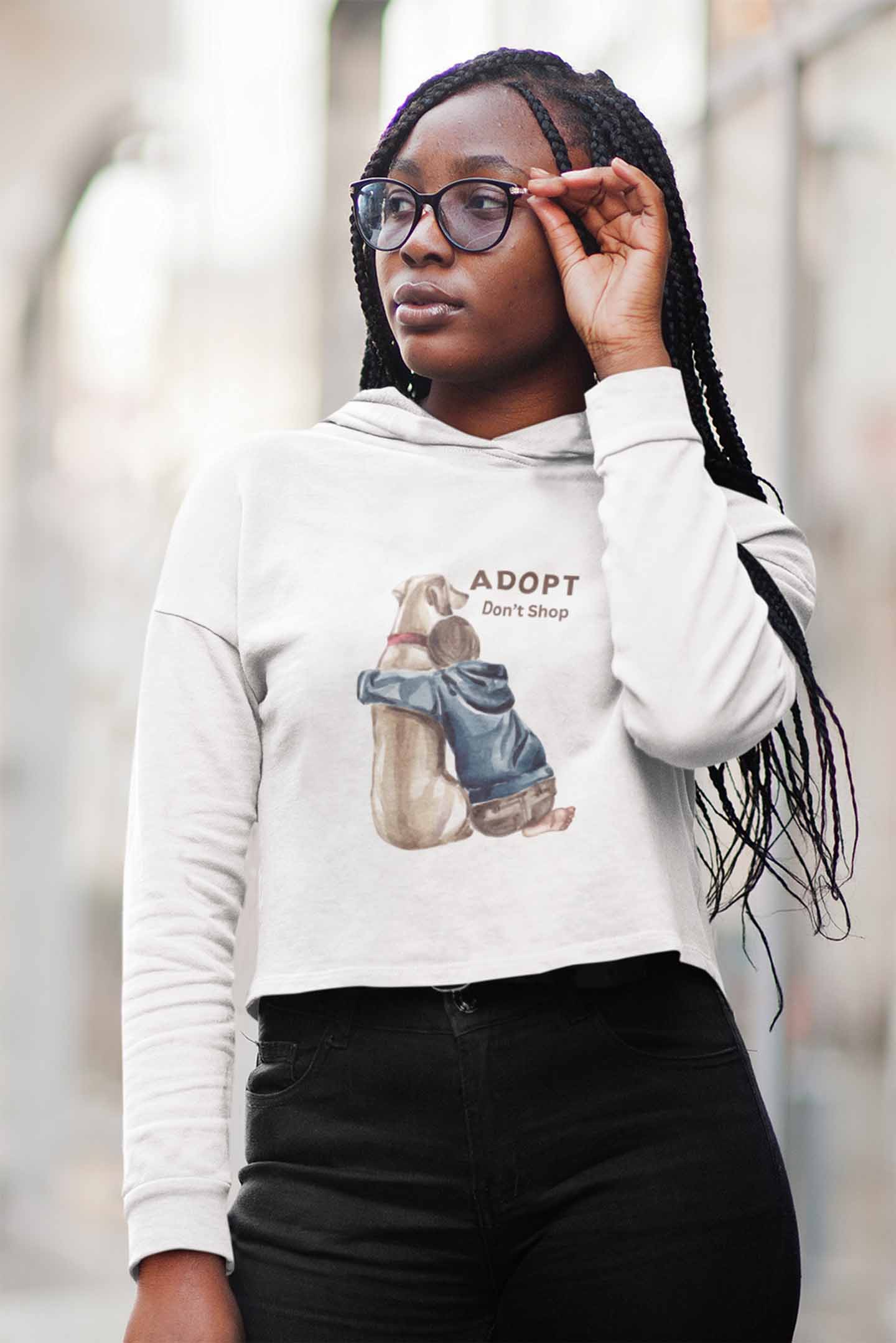 This 'Adopt, Don’t Shop' crop hoodie spreads awareness for street dogs also know as Indies—because every pup deserves love, care, and a home to call their own.