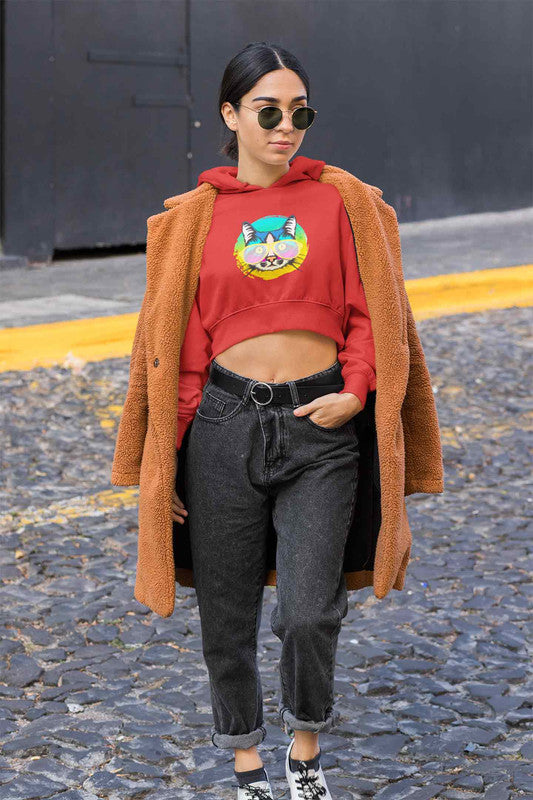 Crop Hoodie (Women) - Cat With Glasses (6 Colours)