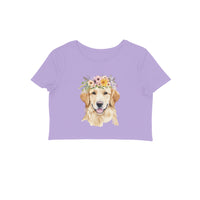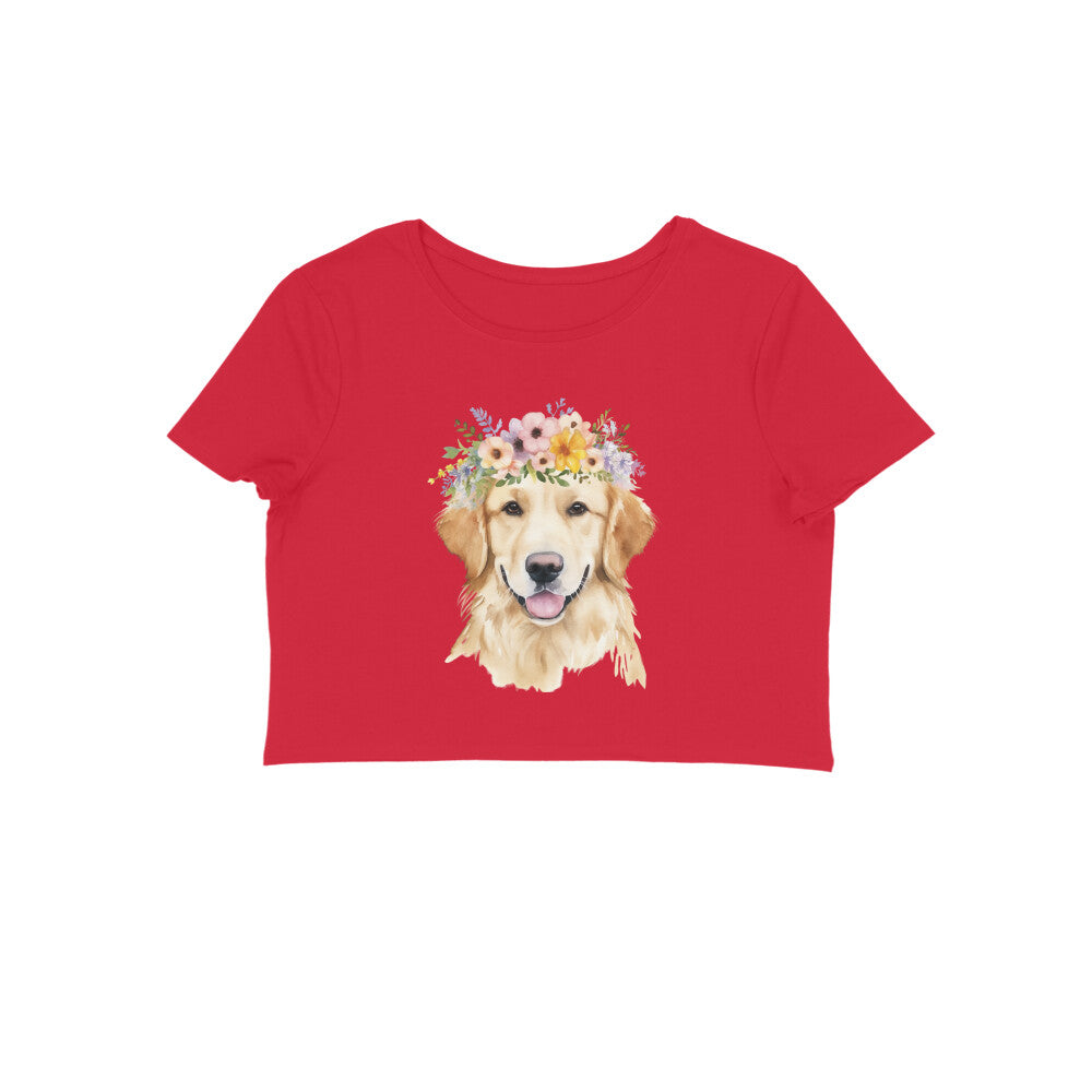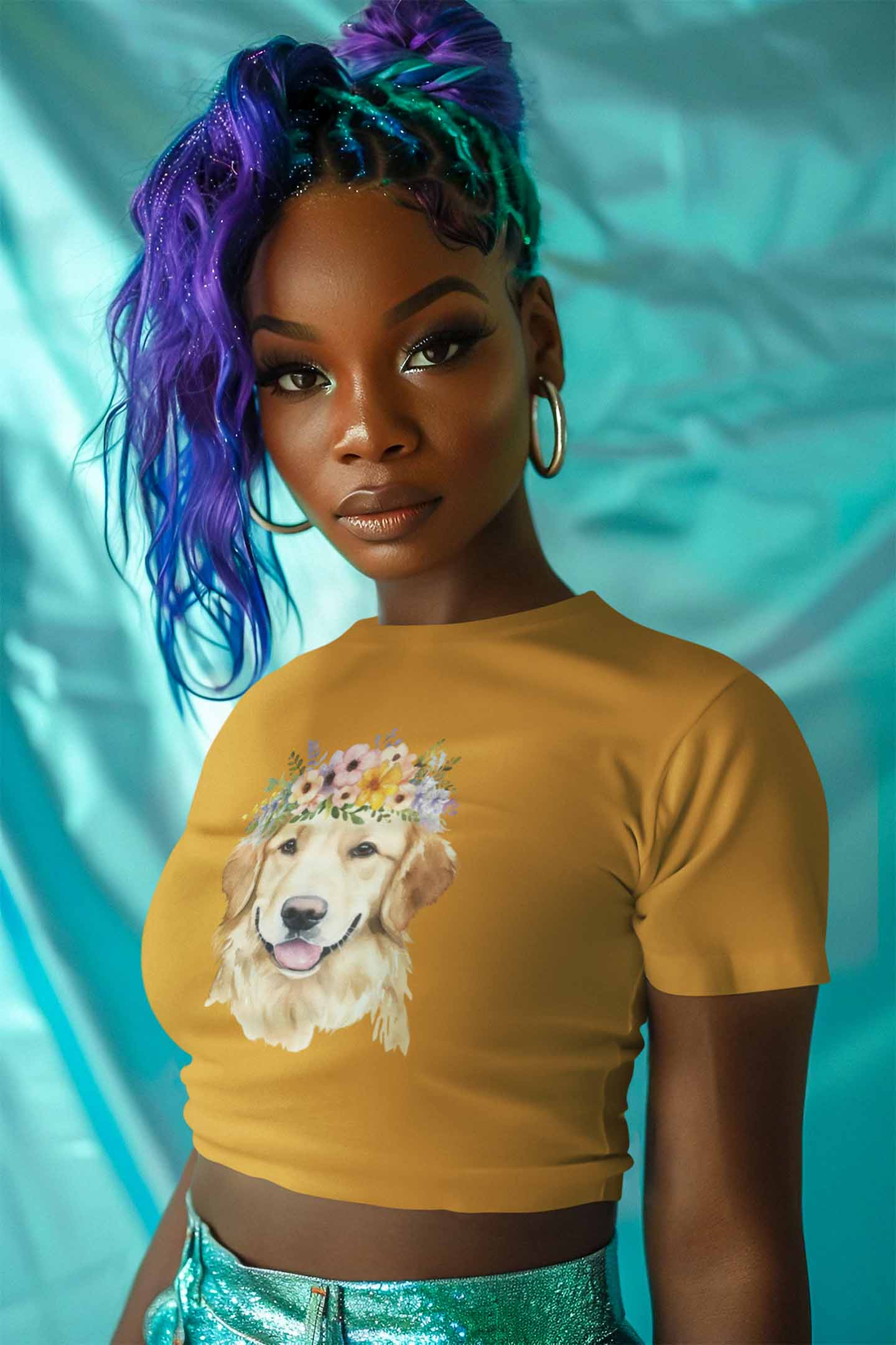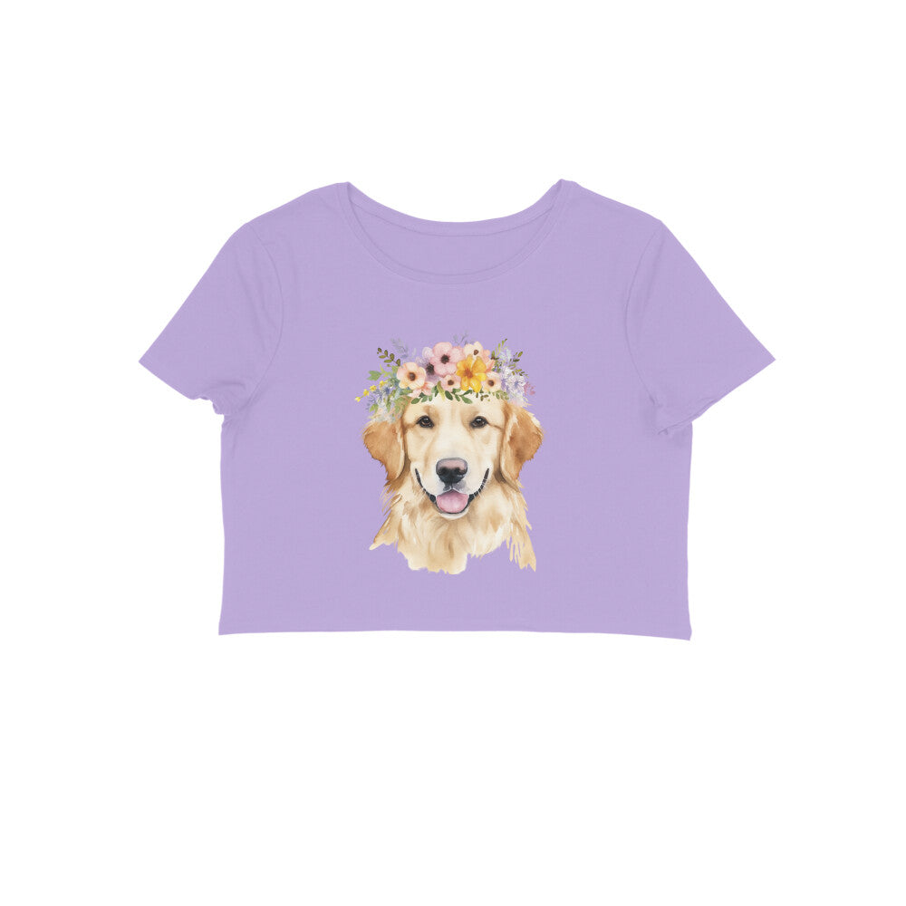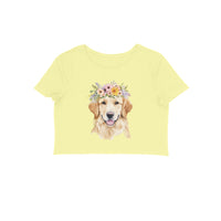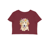 Paws and petals blend in this 'Golden Blooms' crop top, as this golden retriever, crowned in delicate blooms, radiates a heart as golden as its fur.
