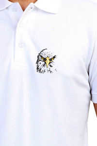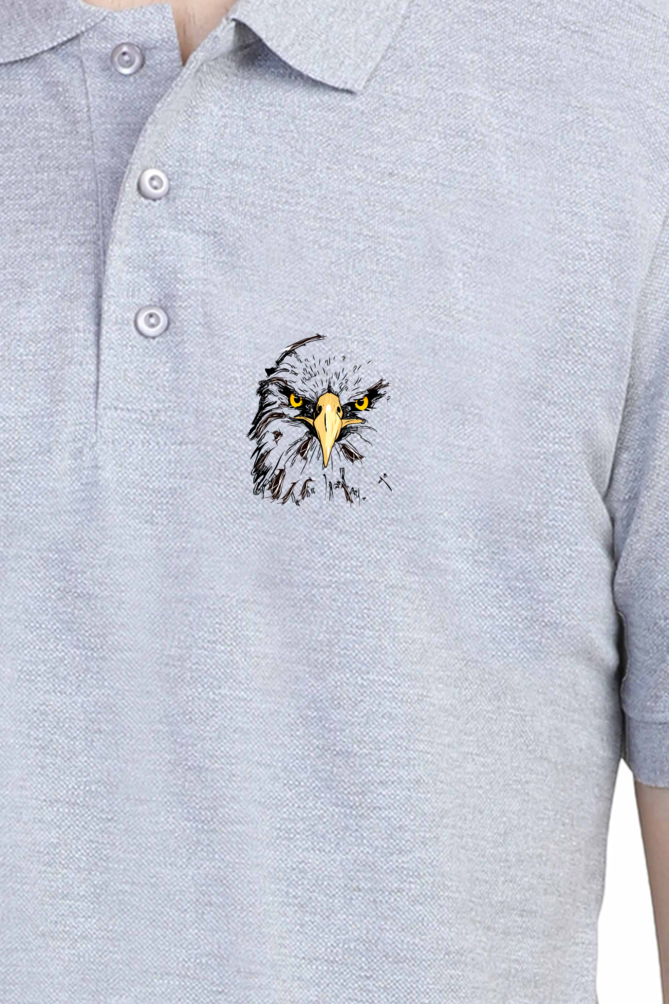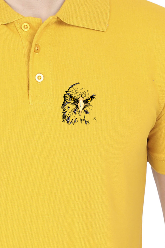 This striking eagle 'Fearless Gaze' polo neck t-shirt captures the essence of fearless determination—golden eyes locked in focus, ready to soar high and conquer new horizons!