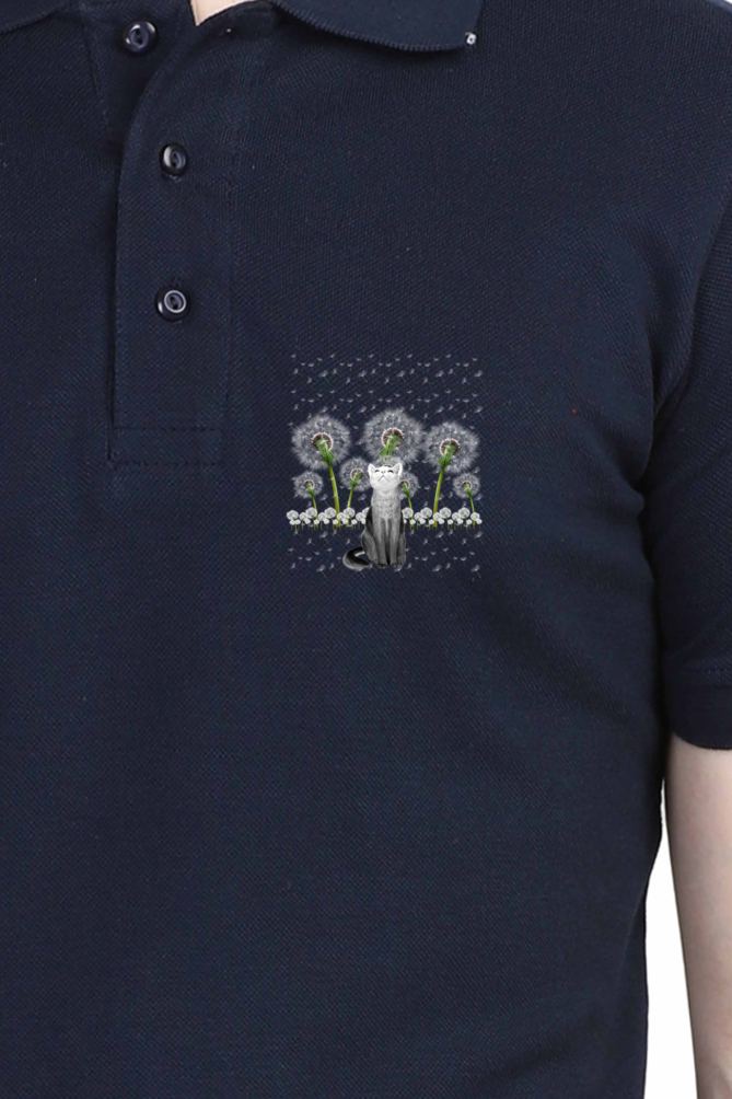 Polo Neck T-Shirt (Men) - Fresh White Cat (2 Colours)