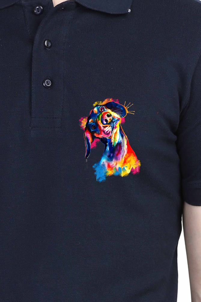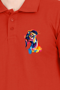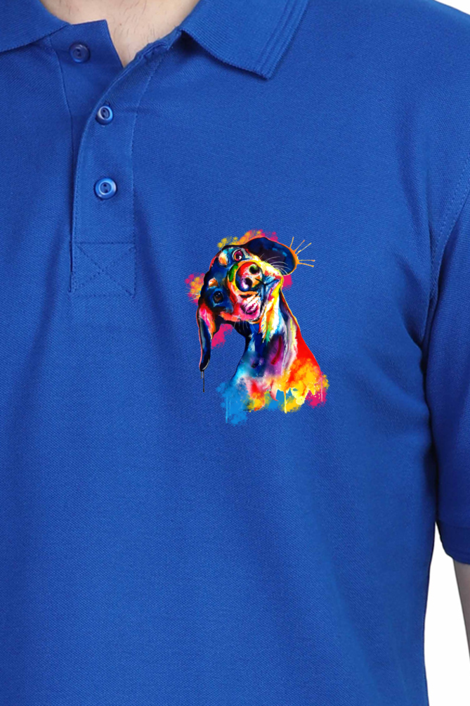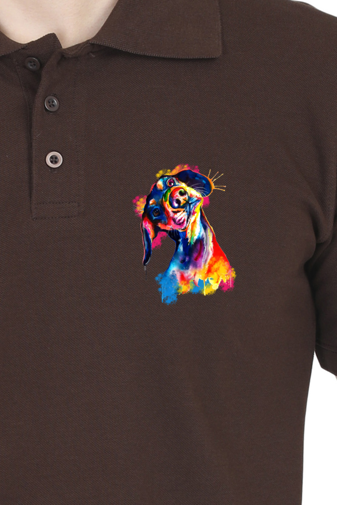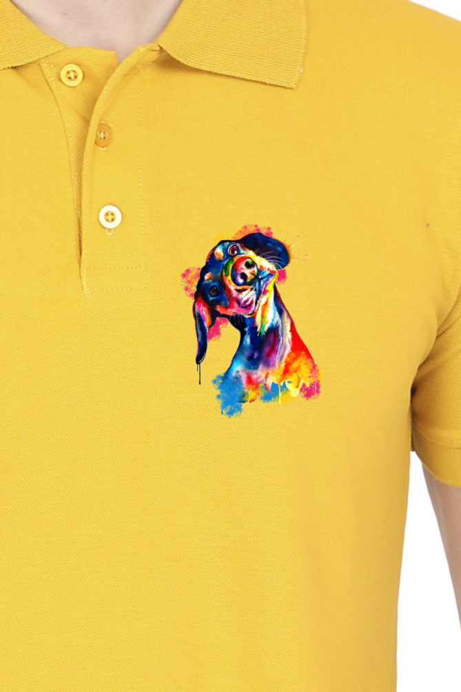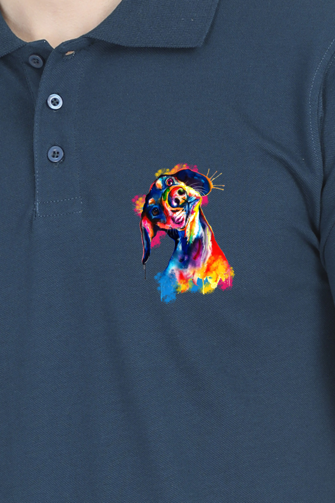 Polo Neck T-Shirt (Men) - Tilted Head Rainbow Dog (11 Colours)