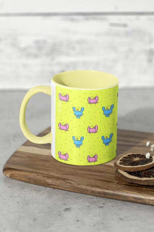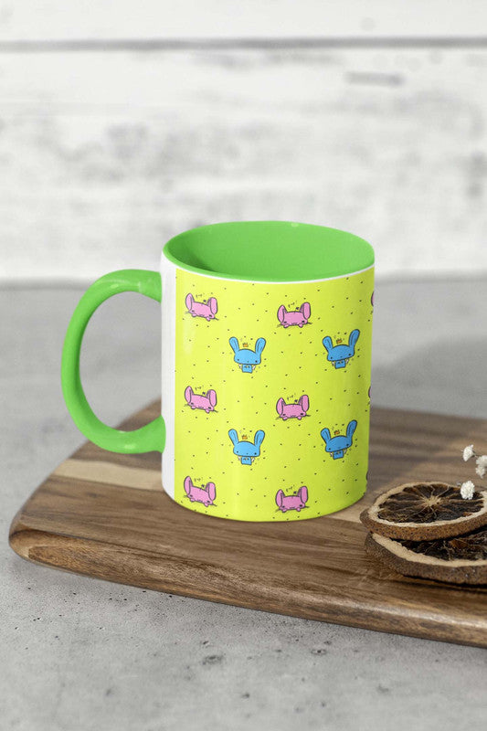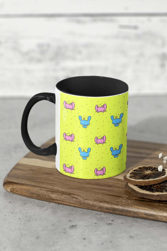 Fluorescent, bright and playful - this 'Psychedelic Bunny' coffee mug captures the mood of the sneaky pink and blue rabbits while they're on a mission to bring a smile to your face.