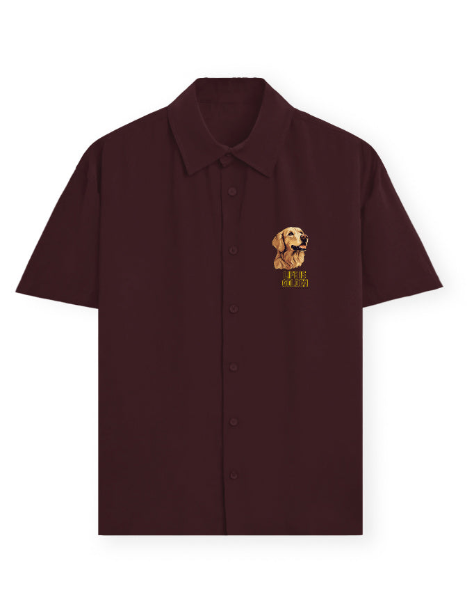 A 'Retriever Royale' Relaxed Fit Half-Sleeves T-Shirt that evokes the warmth and nostalgia of childhood, with the adorable golden retriever bringing memories of playtime, comfort, and joy.