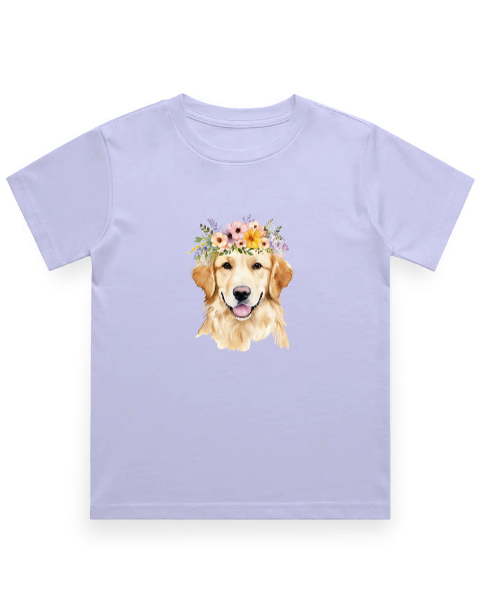 Paws and petals blend in this 'Golden Blooms' boy's t-shirt, as this golden retriever, crowned in delicate blooms, radiates a heart as golden as its fur.