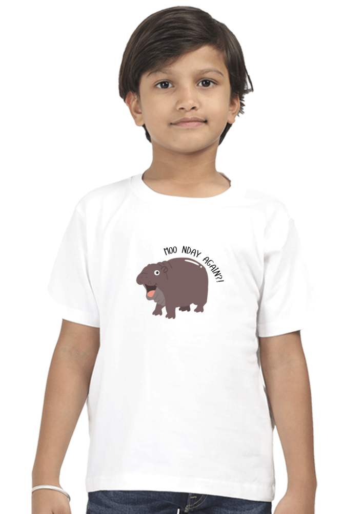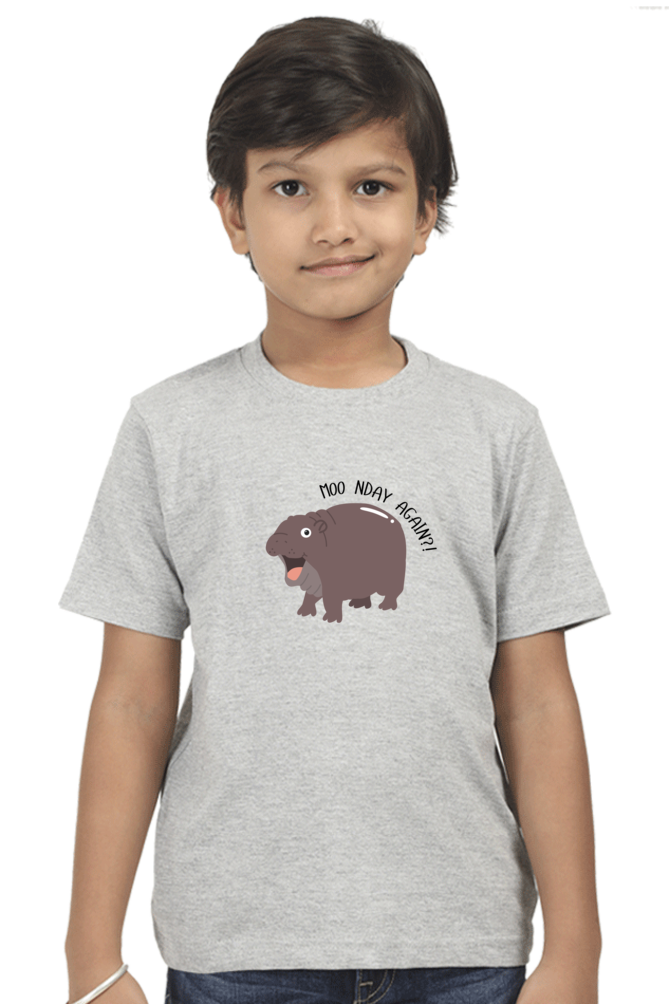 Start your week with a splash of humour! This happy Moo Deng 'Moo Nday Vibes' boy's t-shirt, channels charm and cheekiness —because Mondays need a smile!