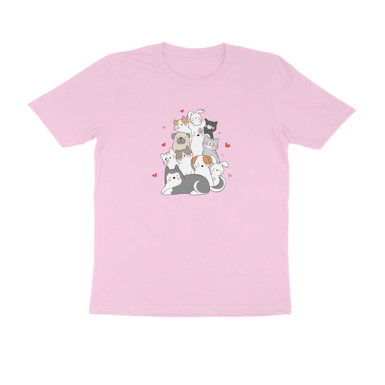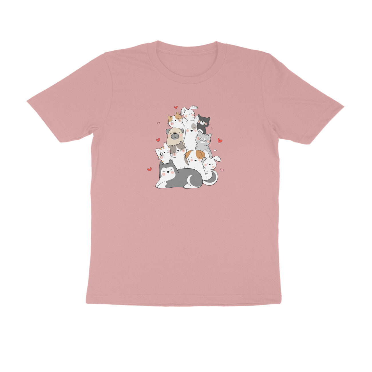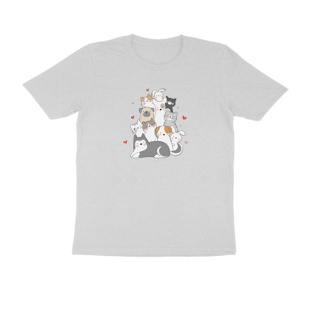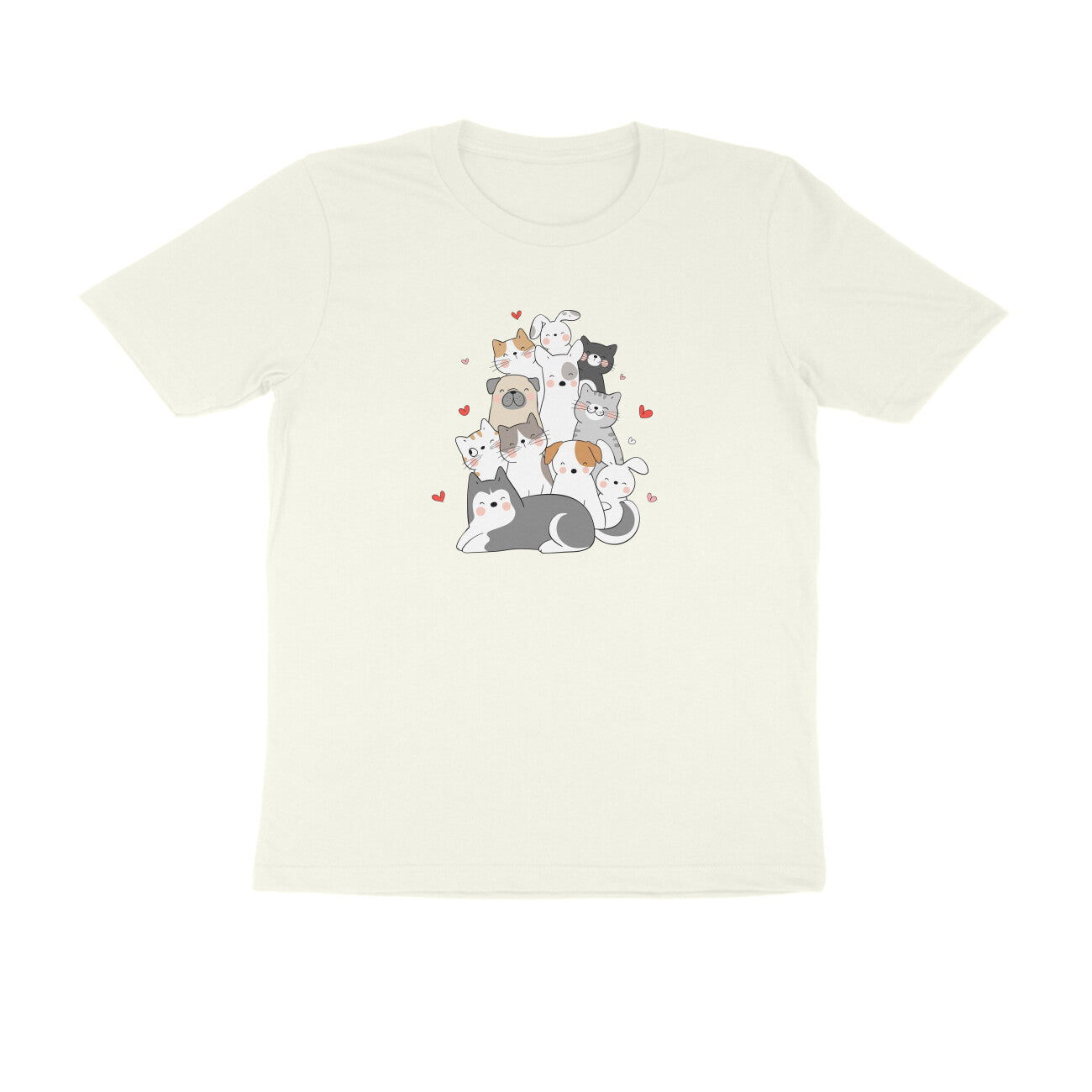This 'Cuddle Crew' men's t-shirt brings together playful pups, cuddly kittens, and happy bunnies—all snuggled up with hearts full of friendship and paws full of mischief!