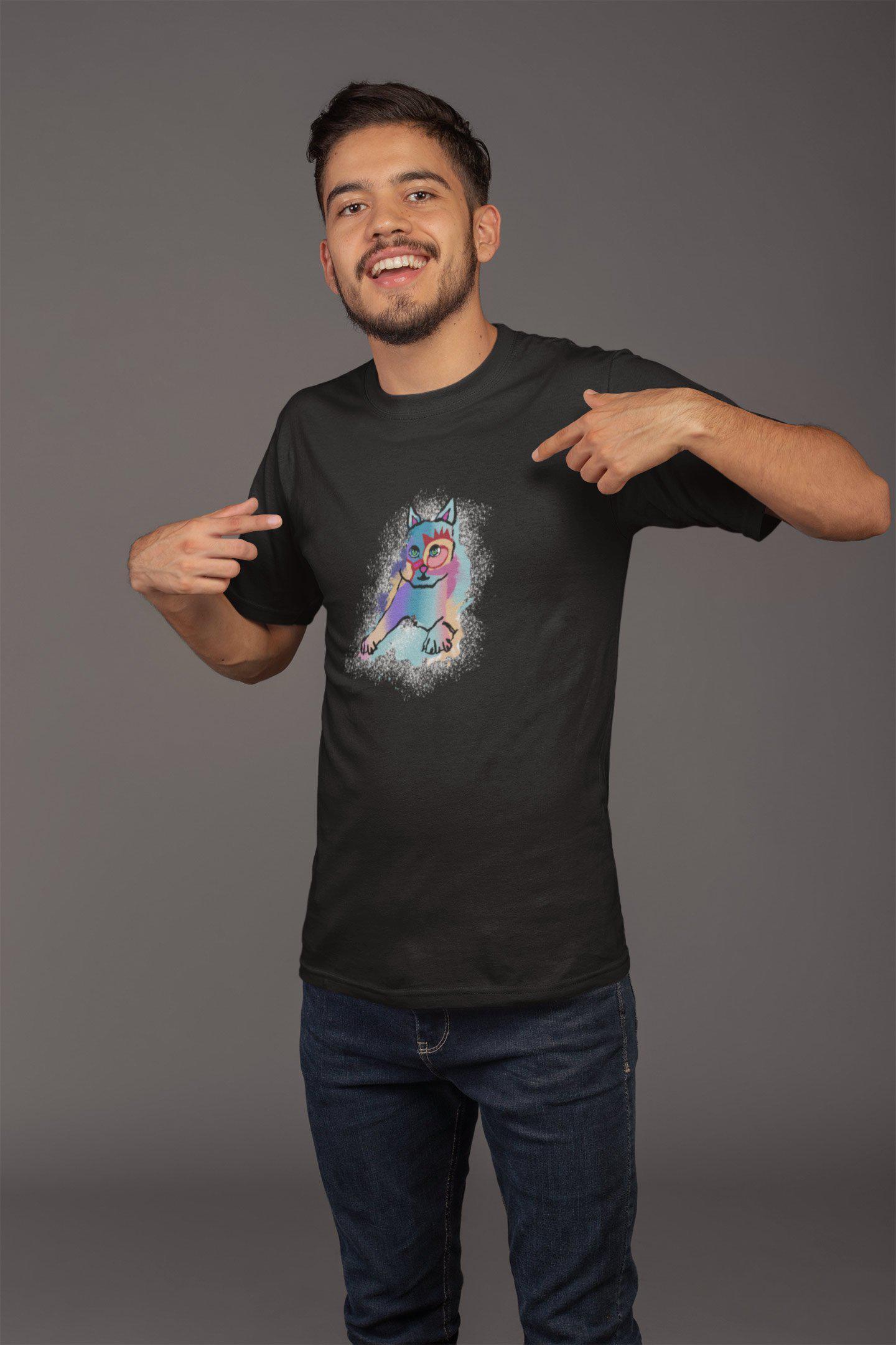 Round Neck T-Shirt (Men) - Russian Blue Sparkle Cat (11 Colours)