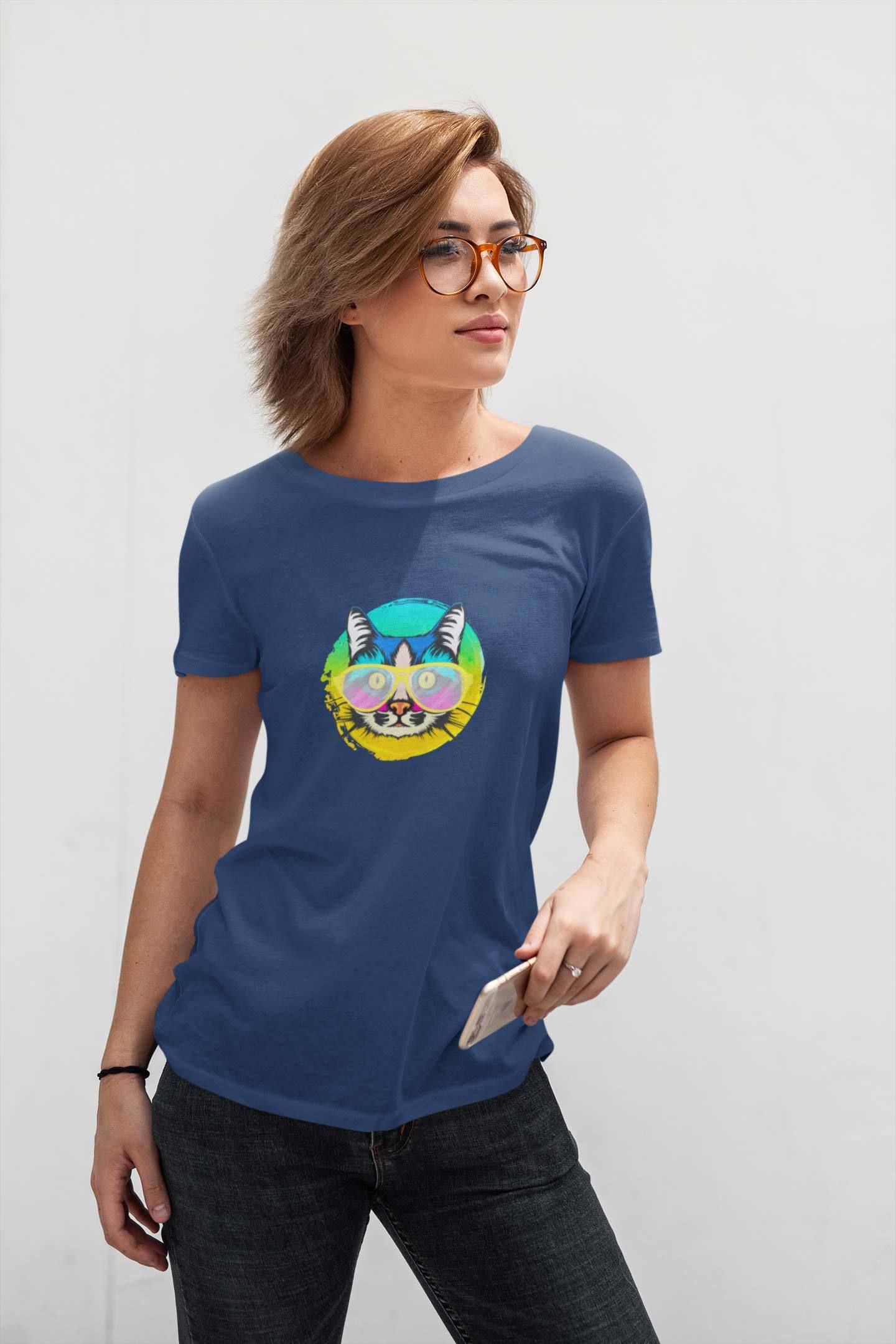 Raise your hands if you are a cool cat parent! Cat lovers will love 'Cat With Glasses' women's t-shirt, dedicated to their active, affectionate kitties.