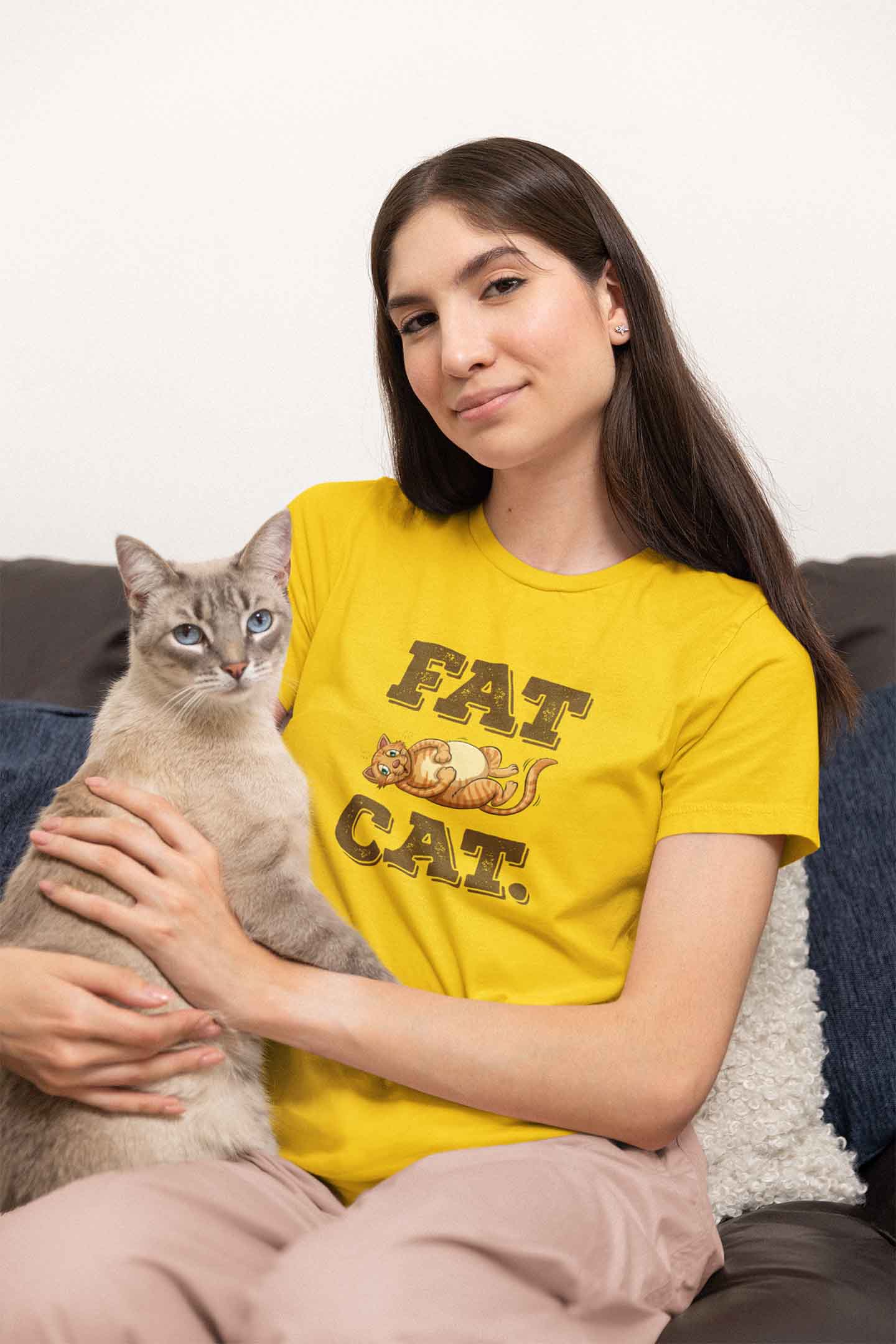 Hey, who're you calling fat? This chubby pussycat will put a smile on anyone's face, with it's perfect lazy personality. Get 'Fat Cat' women's round neck t-shirt now!