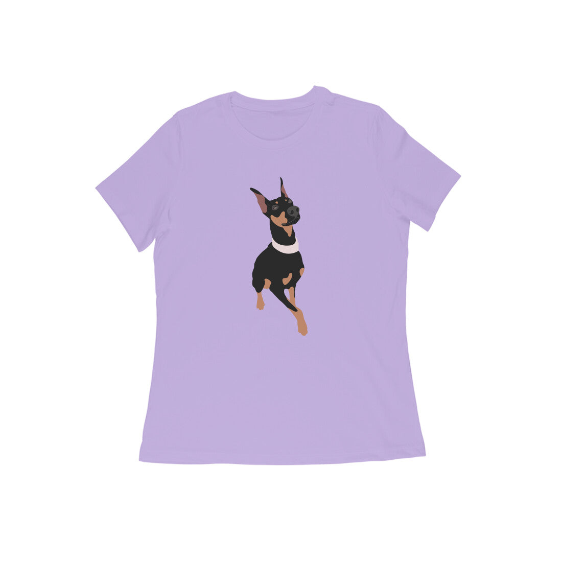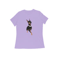 A 'Graceful Guard' women's round neck t-shirt with an alert stance and poised elegance, this Doberman is always ready to stand by your side with unwavering devotion.