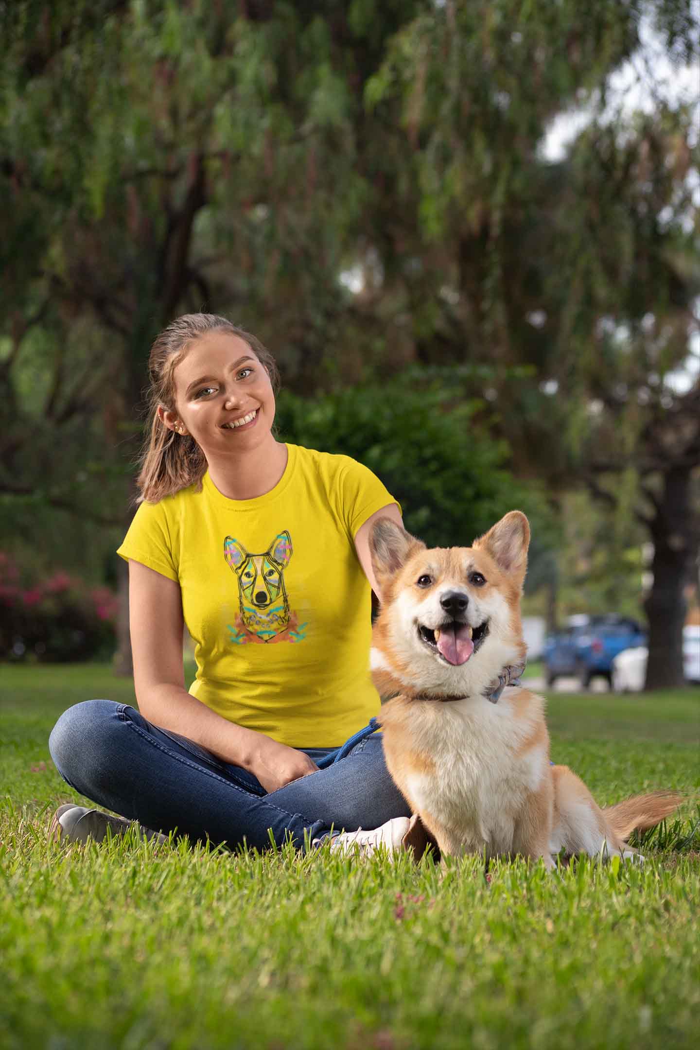 Round Neck T-Shirt (Women) - Happy Corgi (10 colours)