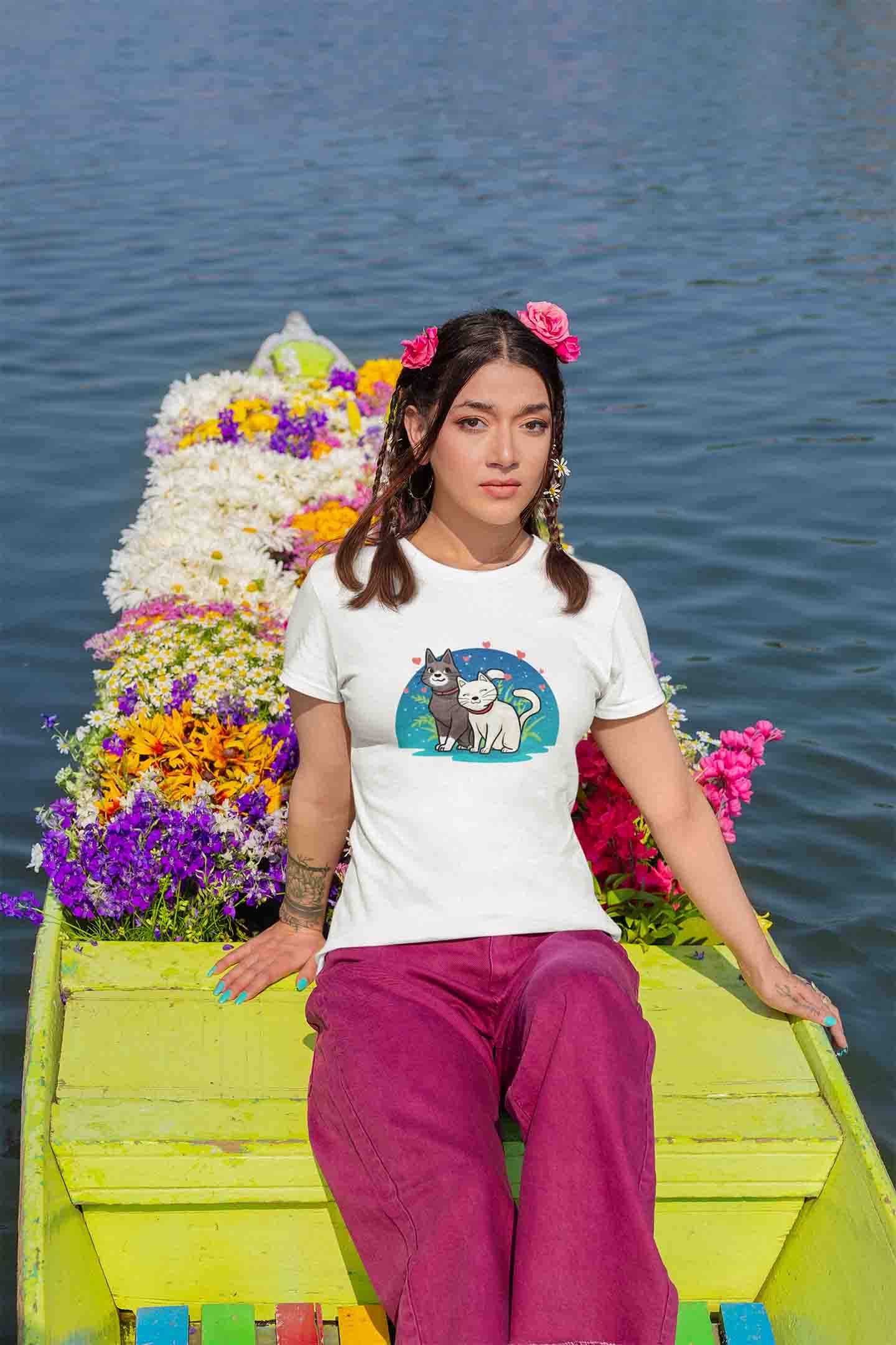 Round Neck T-Shirt (Women) - Pawsitively Adorable Cats (11 colours)