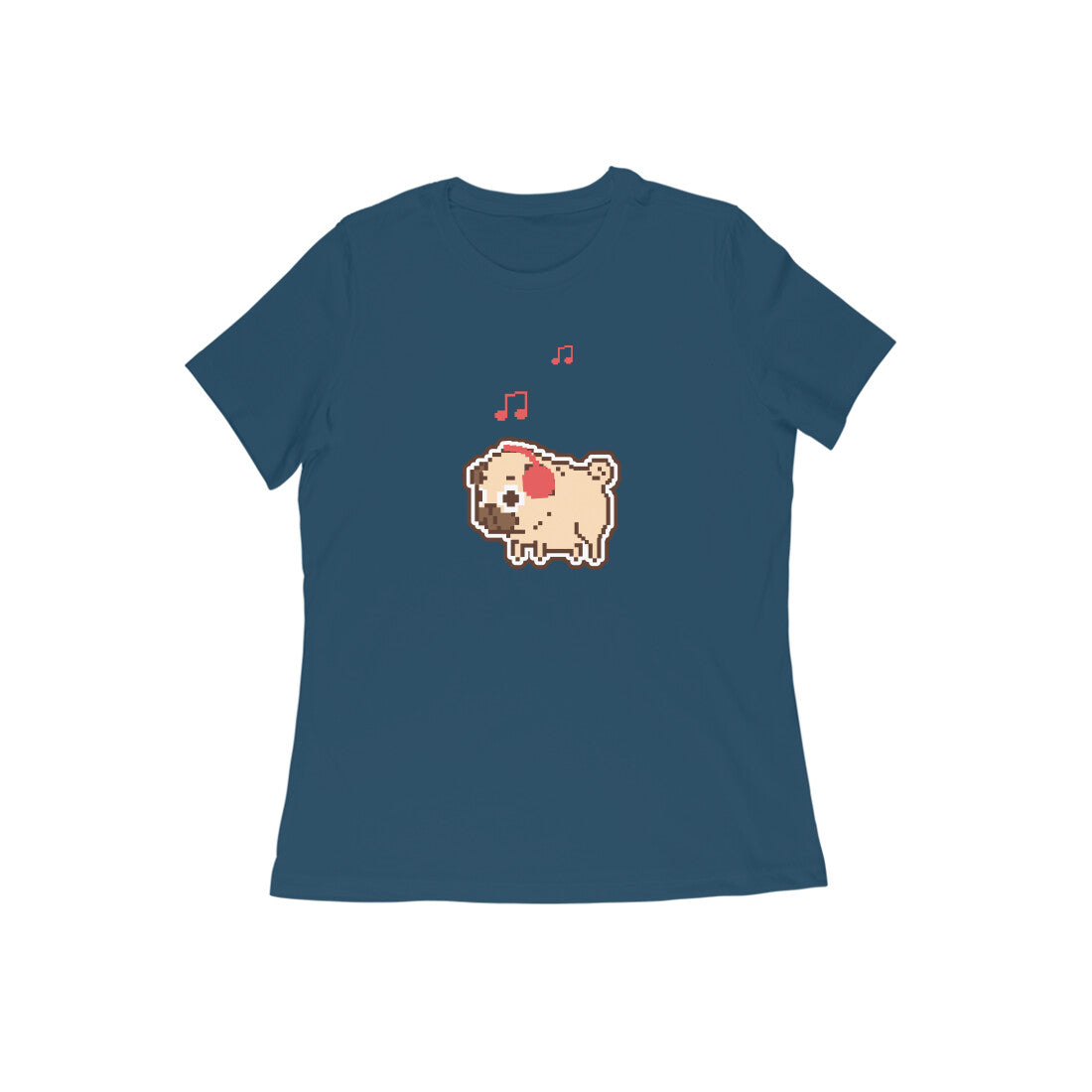 Pugs love sleeping all day, laptime snuggles, and lot of treats - but did you also know they enjoy listening to music? Grab this 'Puggy Baby' women's round neck t-shirt to show your love for pugs, arguably the cutest pups in the universe!