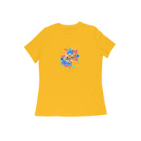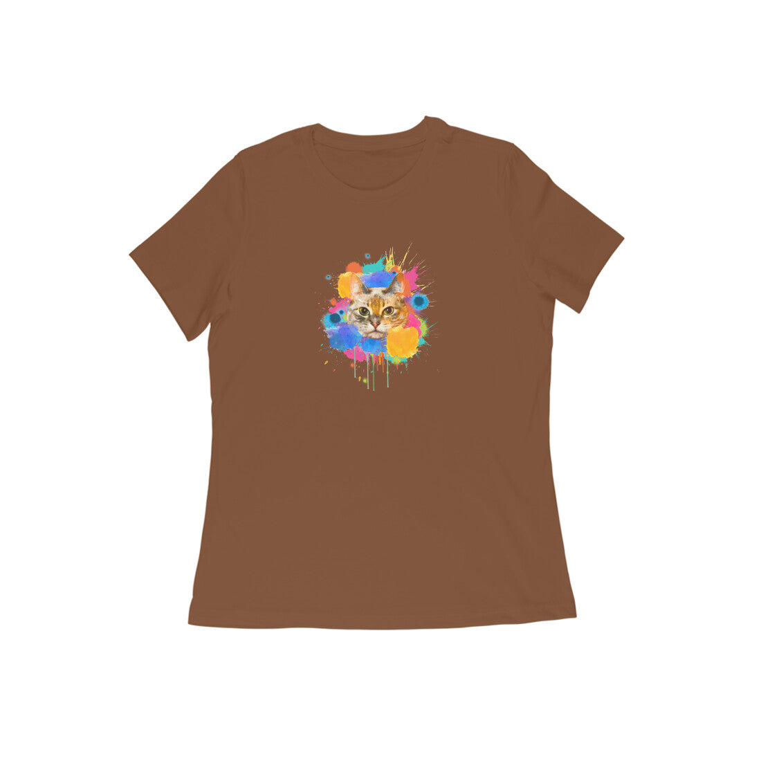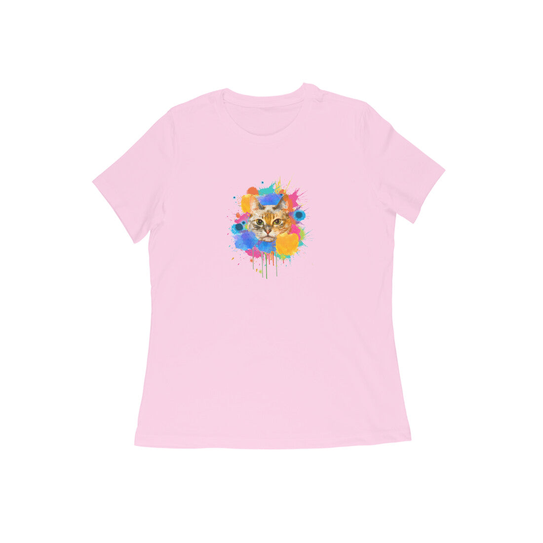 If you're feline happy and you know it, and you really want to show it, then 'Splishy Splashy Cat' women's round neck t-shirt brings a pop of colour into any cat parent's life.