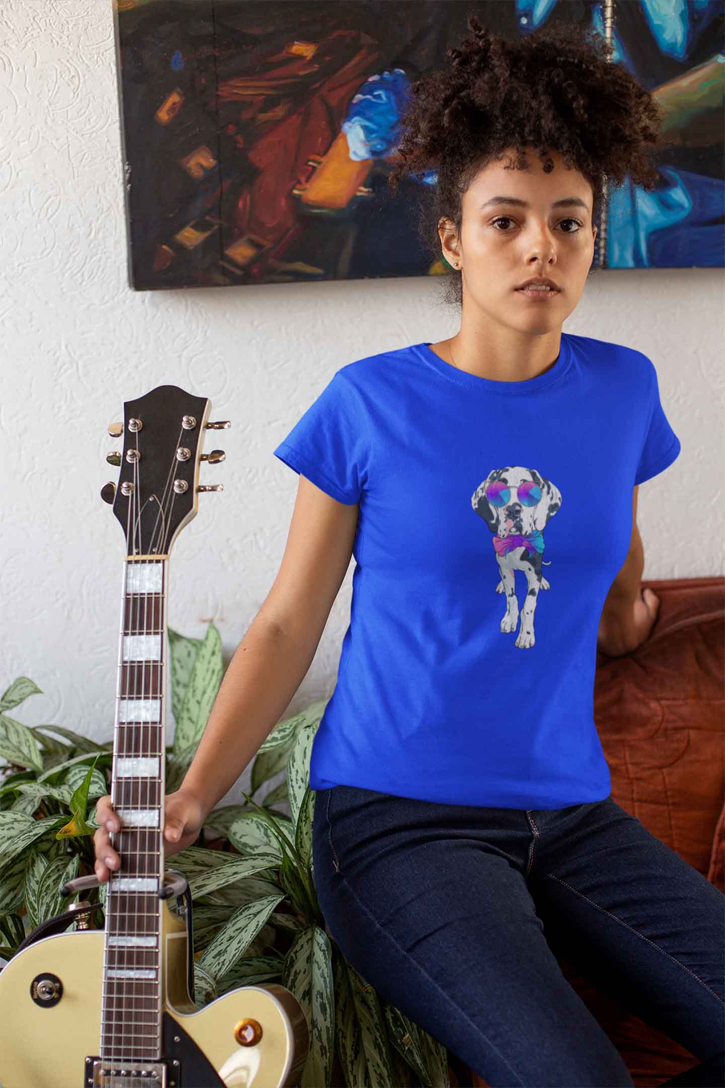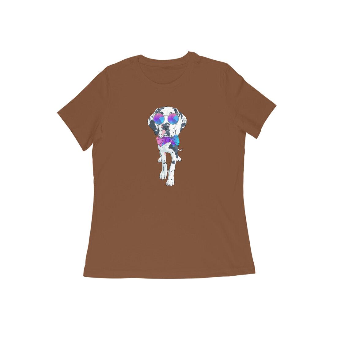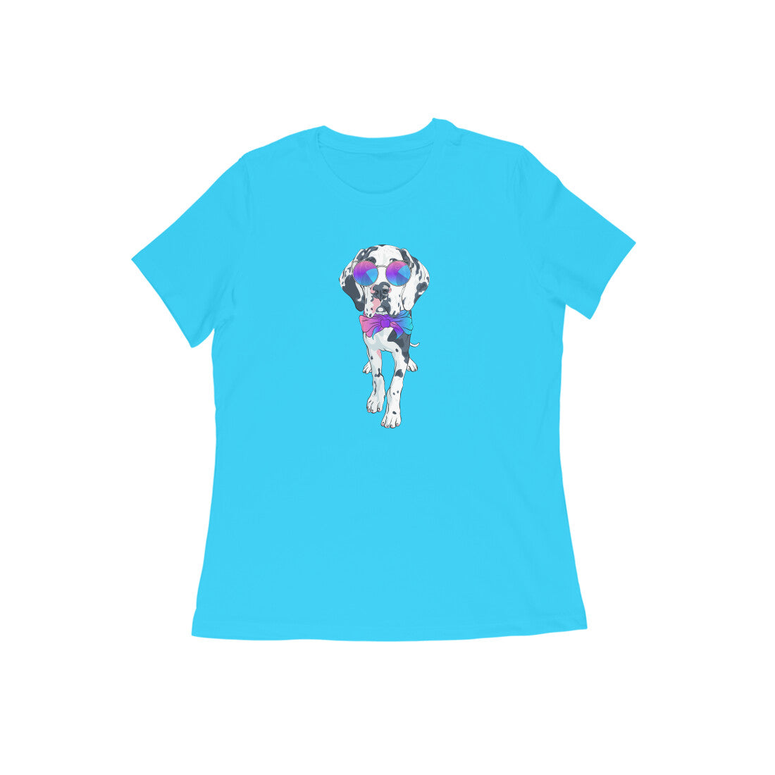 Adventure awaits this Dalmatian 'Spot-tacular Treasure' women's round neck t-shirt - decked out in matching sunglasses and bowtie, this stylish pup is ready to turn every journey into a treasure hunt!
