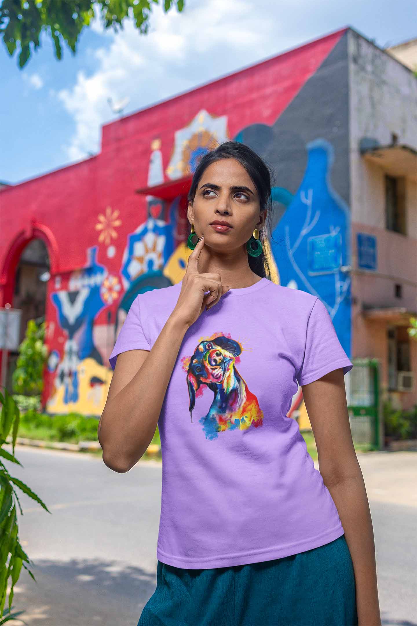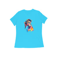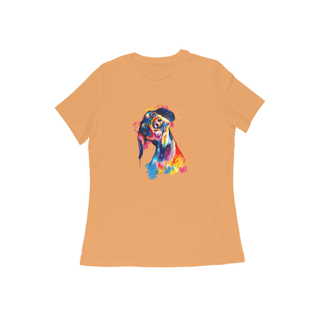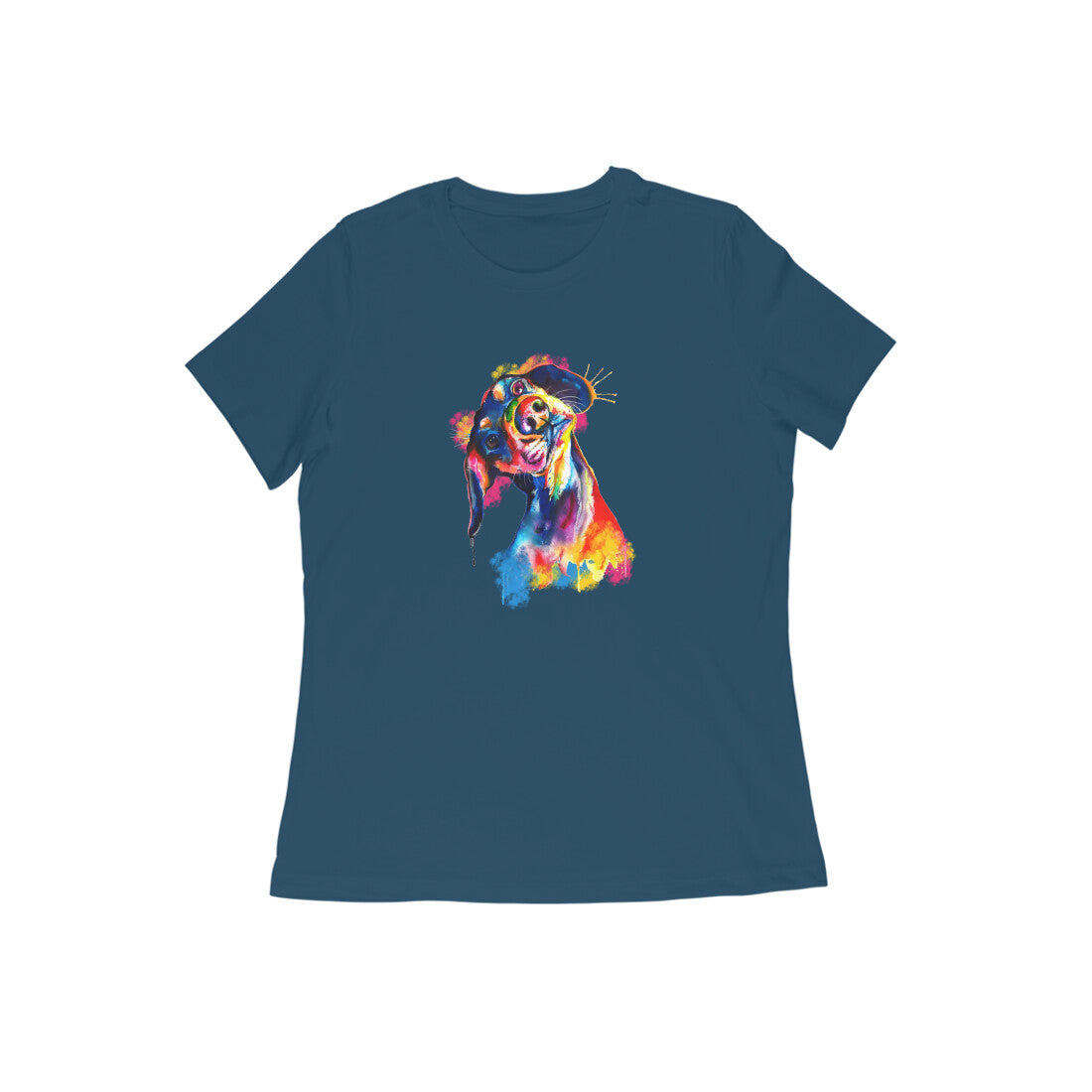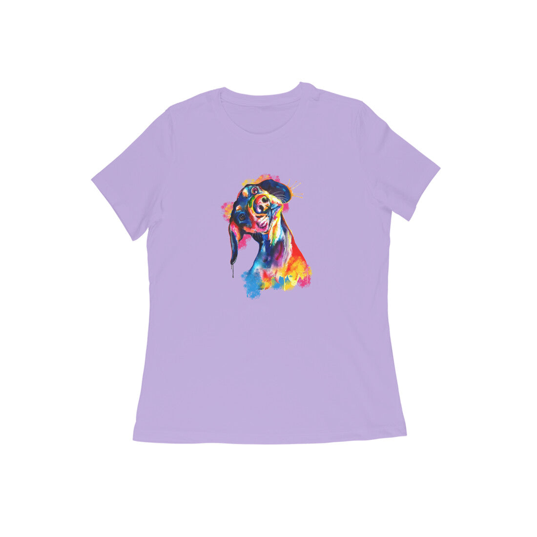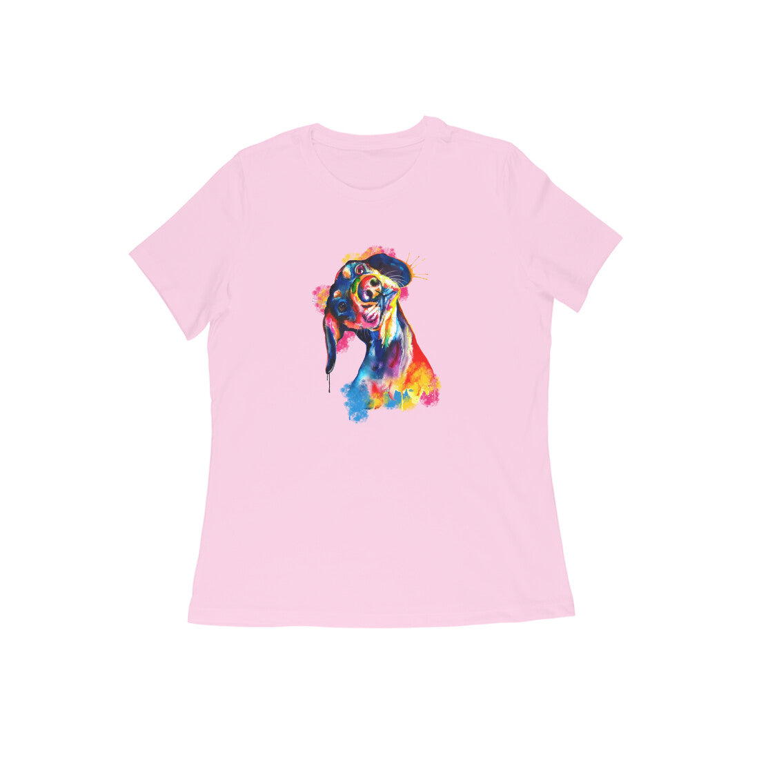 Round Neck T-Shirt (Women) - Tilted Head Rainbow Dog (11 colours)