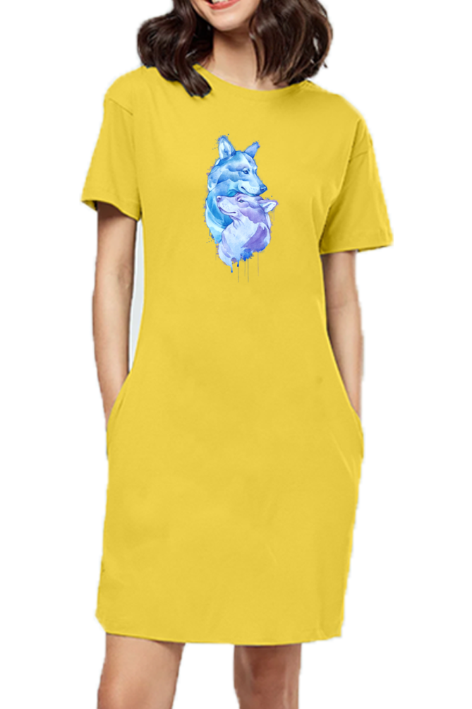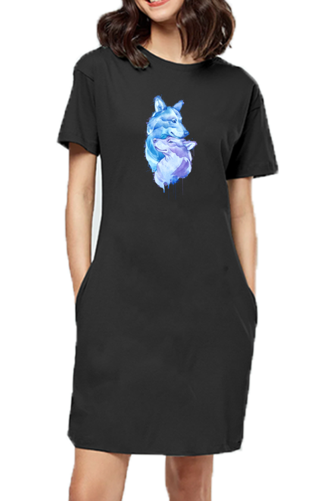 An elegant and classy portrait of wolves in love, this 'Snugglebugs' men's t-shirt dress with pockets is the perfect present to show your partner how much you love cuddling with them and what they mean to you.