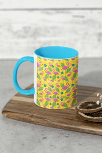 From lazy winter afternoons to lively gatherings with friends, this 'Tropical Tango' coffee mug is a celebration of all things bright and beautiful, with the playful pink flamingoes