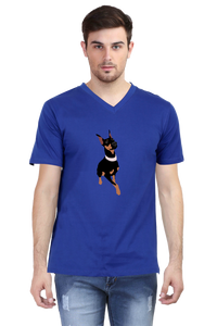 A 'Graceful Guard' men's v-neck t-shirt with an alert stance and poised elegance, this Doberman is always ready to stand by your side with unwavering devotion.