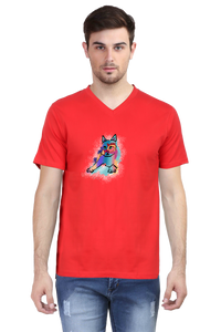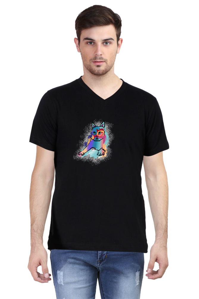 V Neck T-Shirt (Men) - Russian Blue Sparkle Cat (4 Colours)