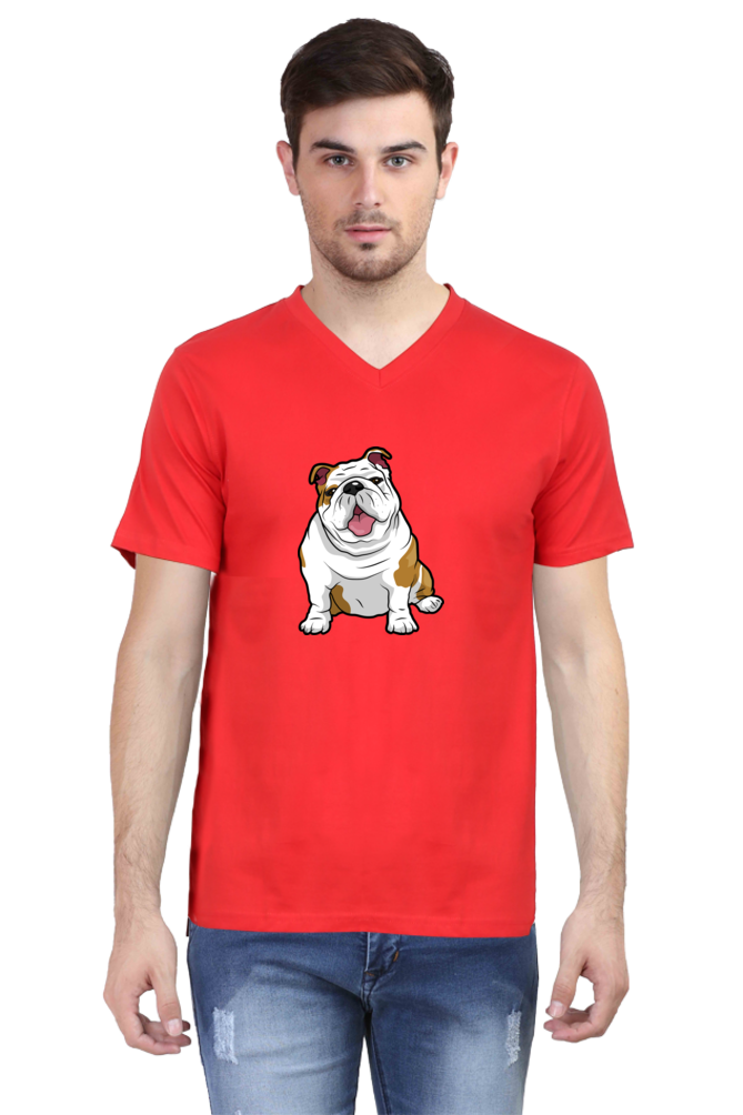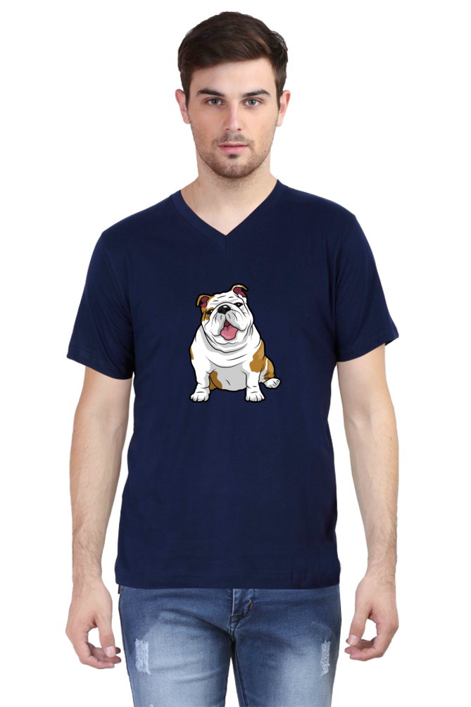 V Neck T-Shirt (Men) - Wringkly Sprinkly Bulldog (6 Colours)